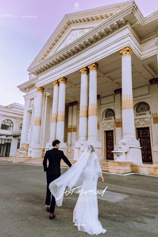 • Chàng dẫn nàng đi: Chú rể nắm tay cô dâu và bước đi trước, cô dâu đi theo sau và nhìn vào chú rể. Dáng này thể hiện sự tin tưởng, che chở và tạo nên một bố cục ảnh rất đẹp.