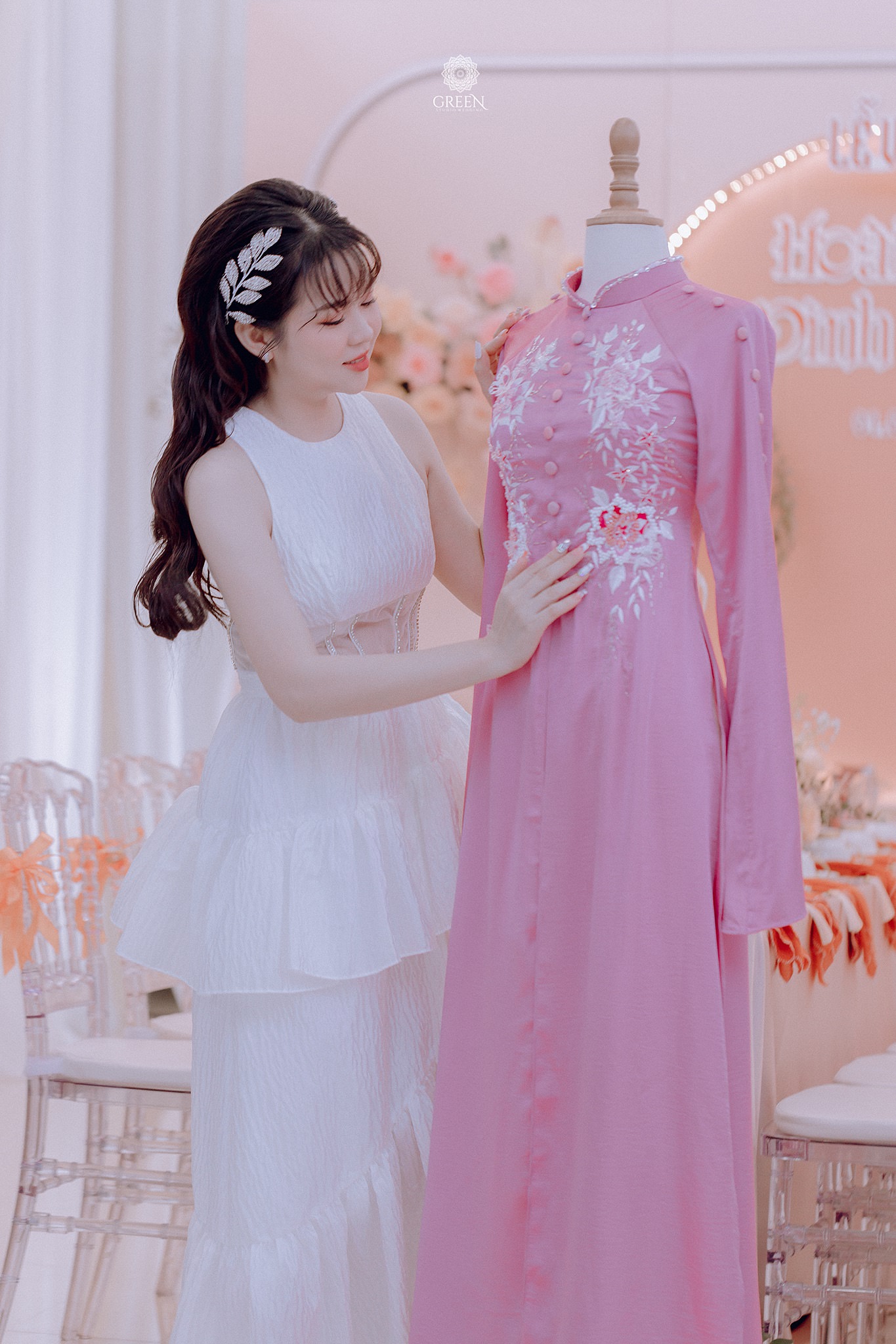 - Bước 1: Tư Vấn Chuyên Sâu: Đội ngũ Green sẽ lắng nghe về tính chất buổi lễ (ăn hỏi, lễ gia tiên, chụp ảnh), sở thích và vóc dáng của bạn để tư vấn những mẫu áo dài phù hợp nhất từ bộ sưu tập.
