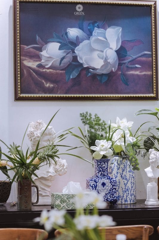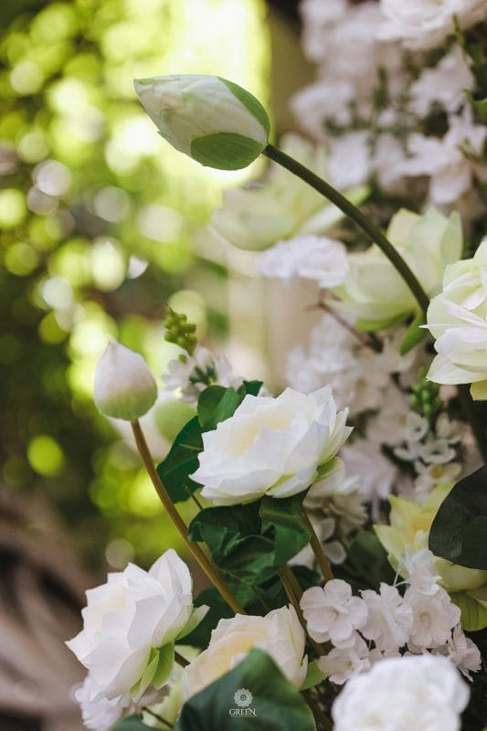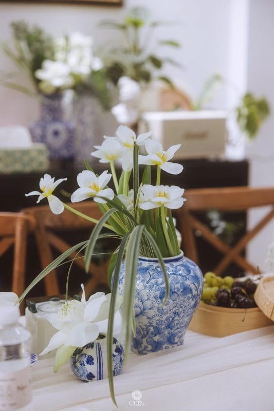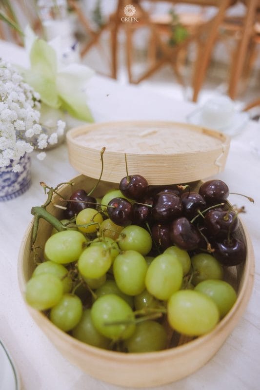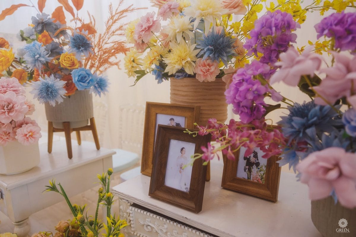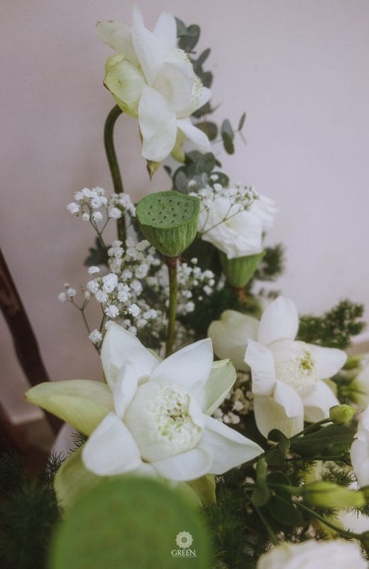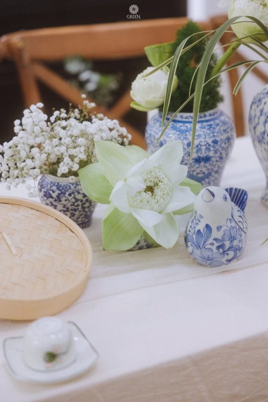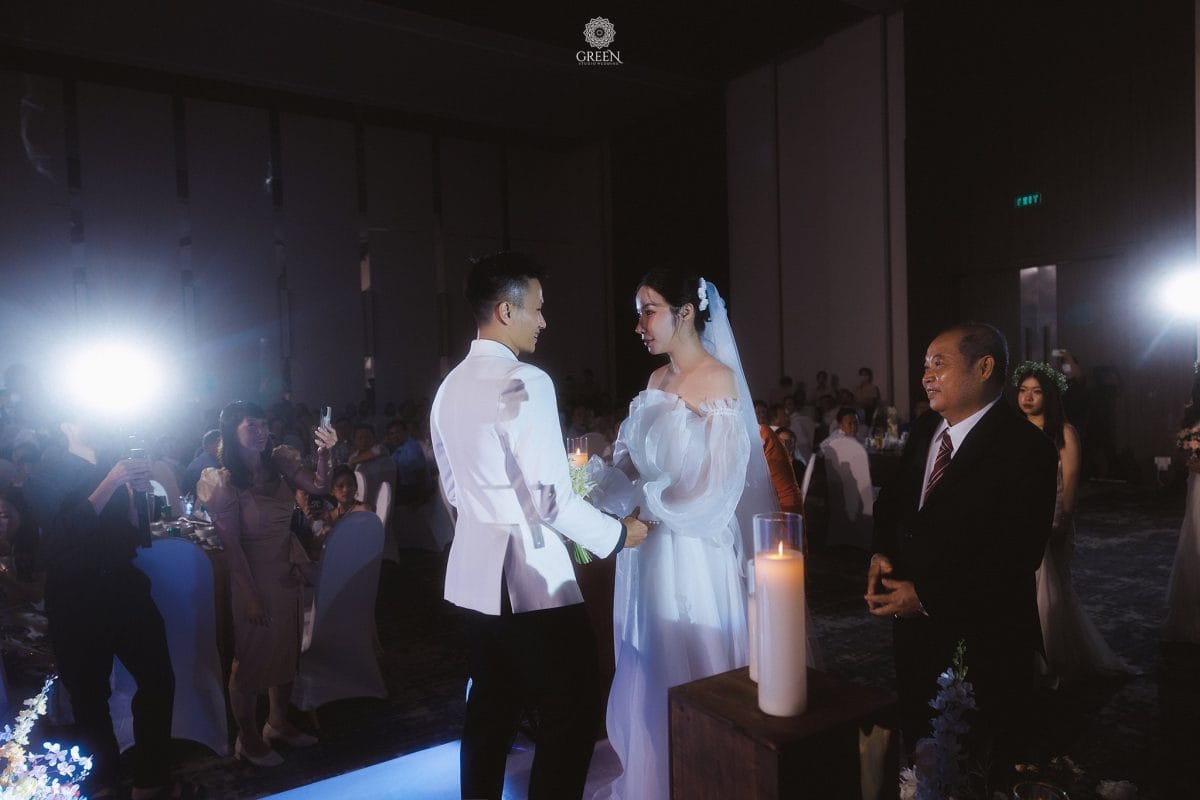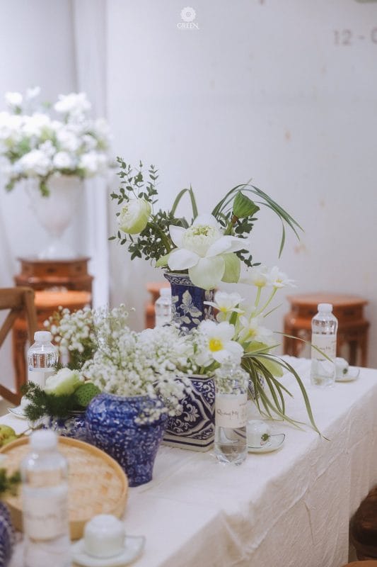 Ngày vui bắt đầu trong không gian trang nghiêm của lễ gia tiên. Tà áo dài truyền thống, mâm quả đỏ thắm, và những lời dặn dò của cha mẹ đã tạo nên những khung hình đầy ý nghĩa. Ống kính của Green Studio lúc này là một người quan sát thầm lặng, bắt trọn ánh mắt tự hào của ba, cái siết tay bịn rịn của mẹ khi Trân chuẩn bị về nhà chồng. Đây là những khoảnh khắc nền tảng, tạo nên chiều sâu cho một bộ phóng sự cưới giàu cảm xúc.