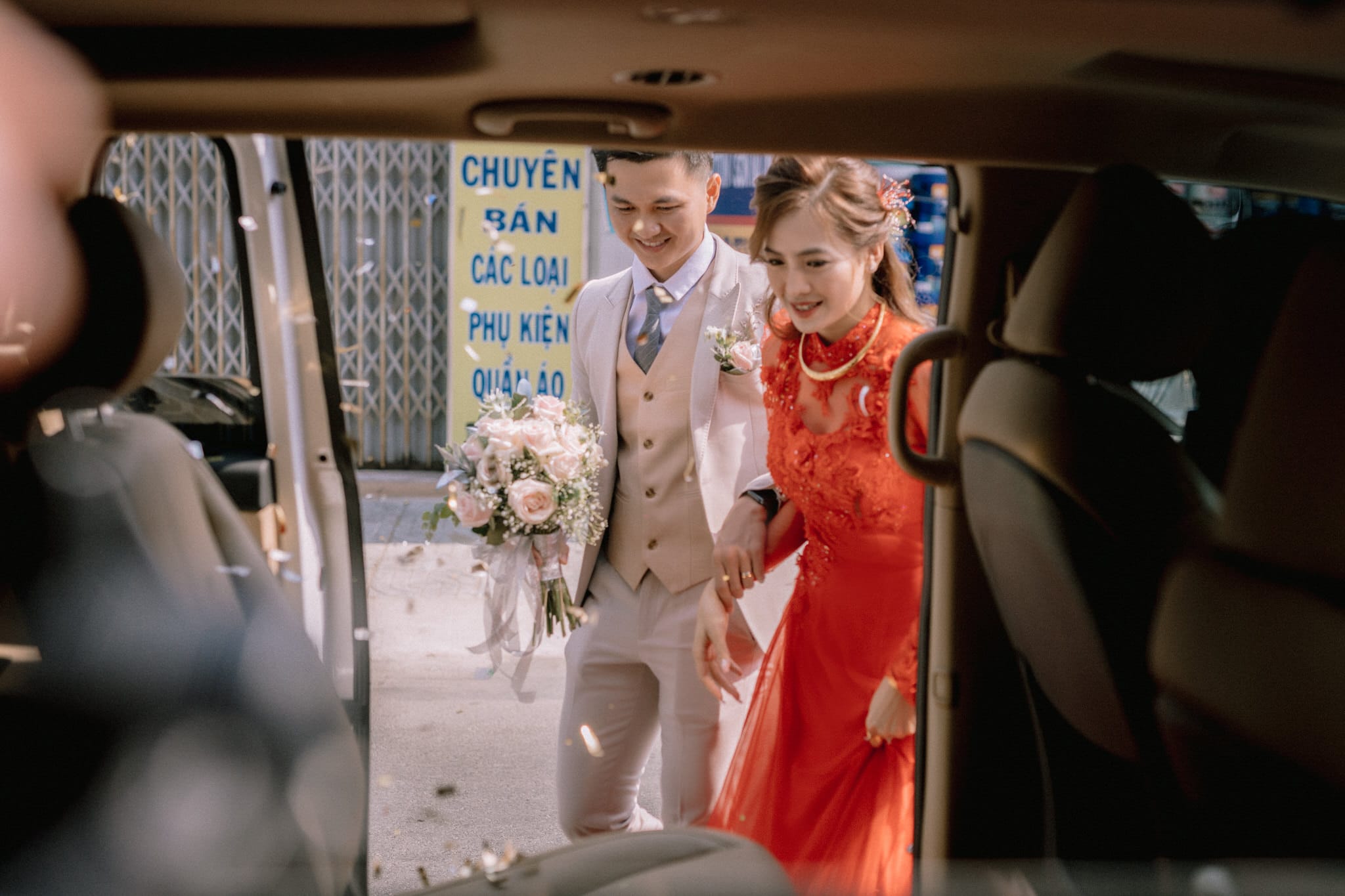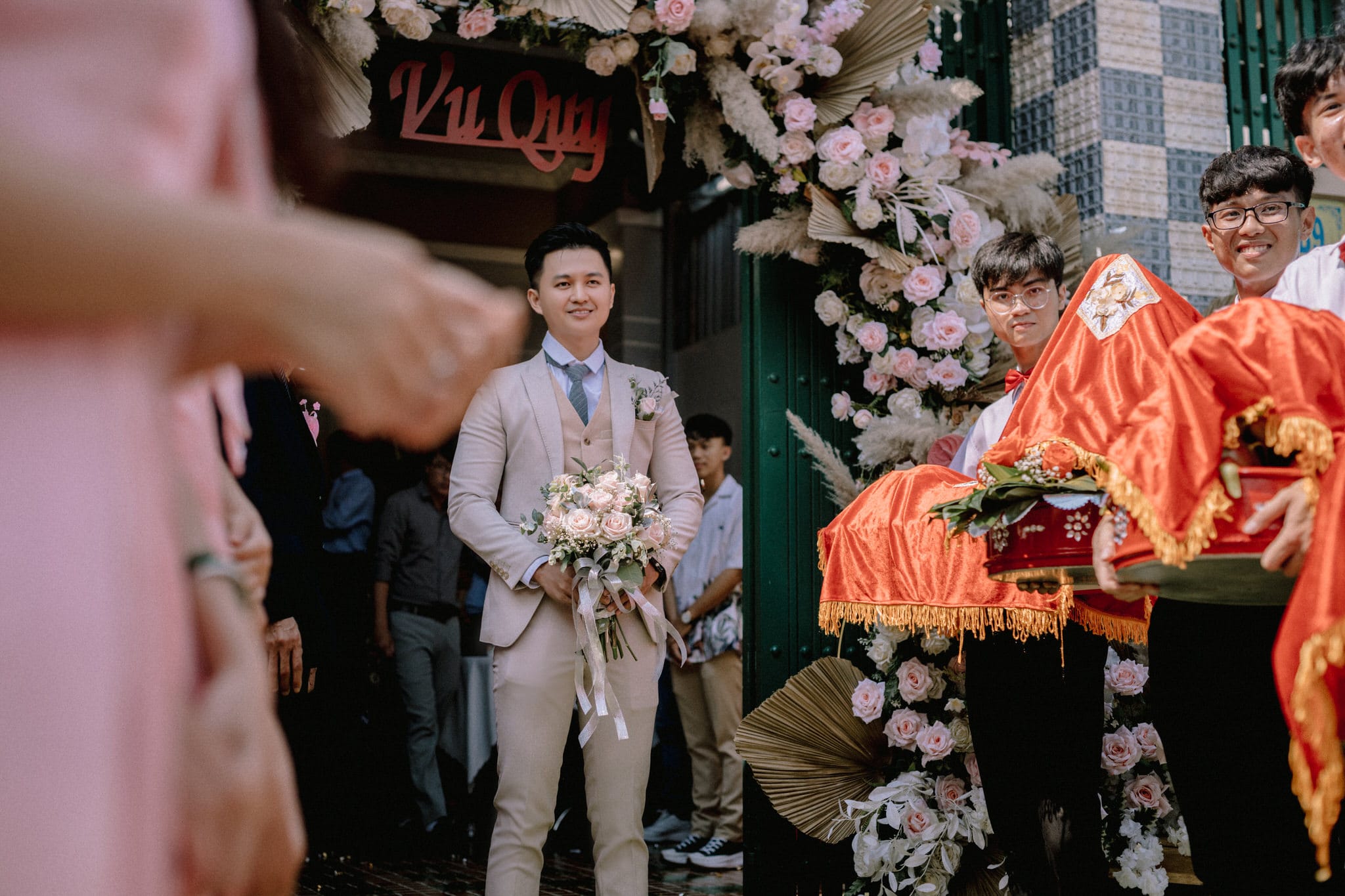 Buổi sáng bắt đầu trong không gian trang nghiêm và ấm cúng của lễ gia tiên. Tà áo dài thướt tha, khay trầu cau đỏ thắm và những lời dặn dò của cha mẹ đã tạo nên những khung hình đầy ý nghĩa. Ống kính của Green Studio lúc này là một người quan sát thầm lặng, bắt trọn ánh mắt tự hào của ba, cái siết tay bịn rịn của mẹ và nụ cười hạnh phúc của đôi uyên ương khi chính thức nên duyên vợ chồng trước bàn thờ tổ tiên.