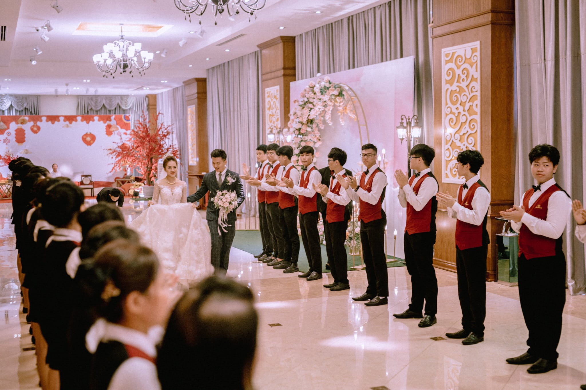Khi thành phố lên đèn, không gian chuyển mình sang vẻ đẹp lộng lẫy, sang trọng tại nhà hàng Maxim’s. Đây là nơi tình yêu của Như Quỳnh và Huỳnh Anh được thăng hoa cùng bạn bè và người thân. Từ điệu nhảy đầu tiên đầy lãng mạn, khoảnh khắc cắt bánh, nâng ly chúc phúc cho đến những trò chơi vui nhộn, tất cả đều được chúng tôi ghi lại một cách tự nhiên nhất, tạo nên một chương cuối đầy sống động cho bộ ảnh phóng sự cưới Như Quỳnh – Huỳnh Anh.