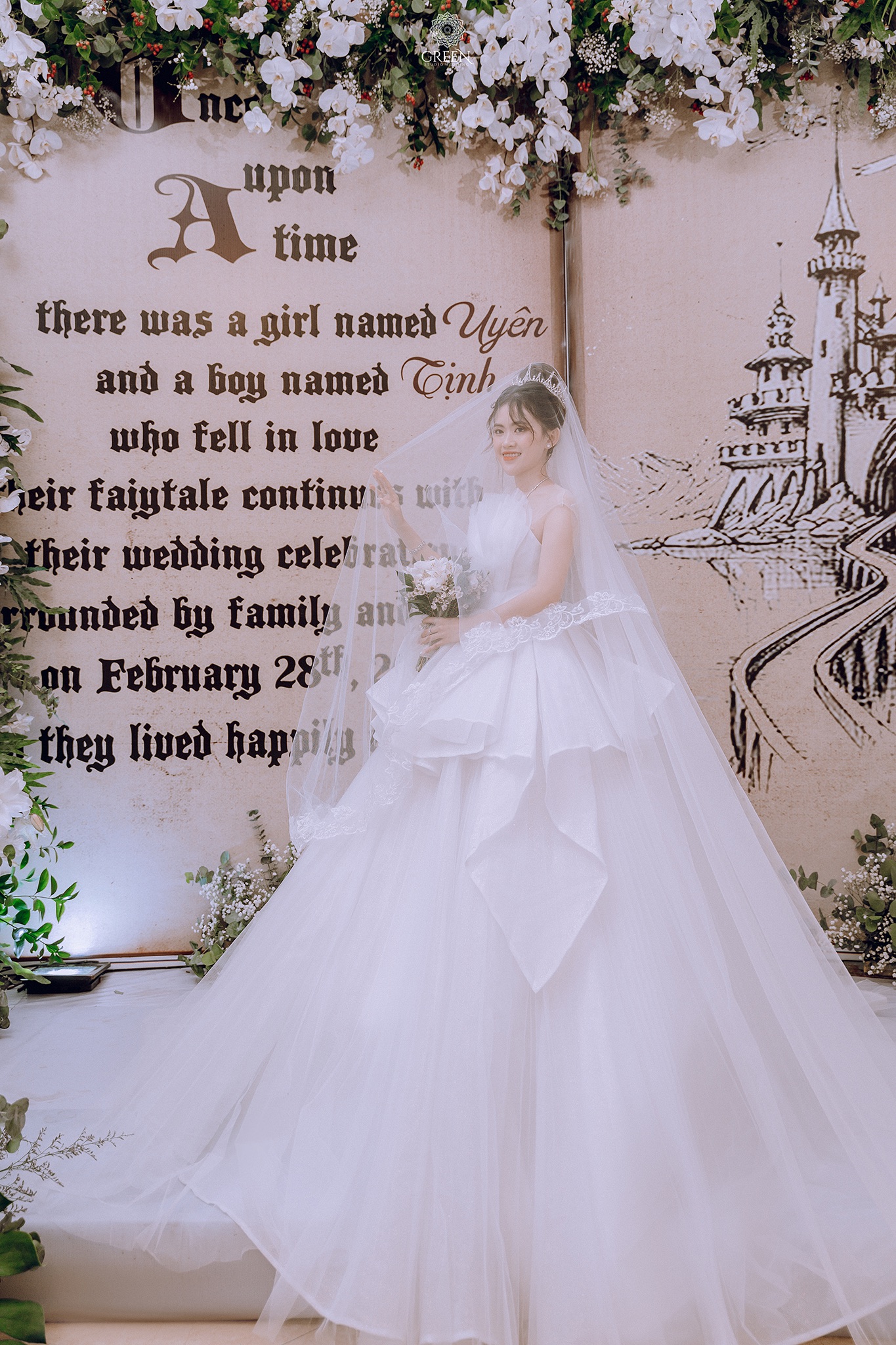 - 8:30: Cô dâu trang điểm xong, bắt đầu mặc áo dài cưới.
