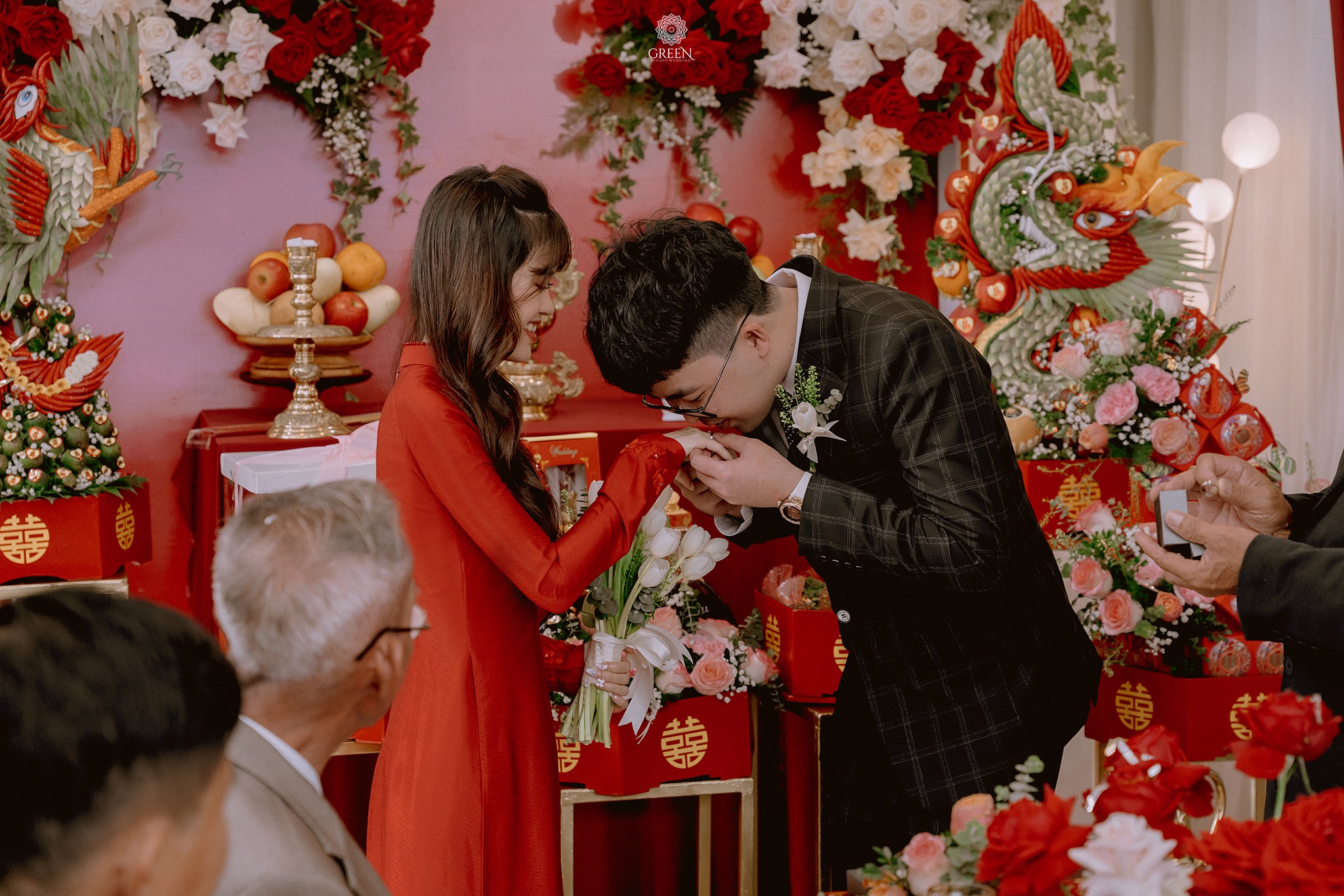 - Mẹo từ Green Studio: Hãy phân công một người (anh/chị/em thân thiết) làm “nhắc tuồng”, hỗ trợ cặp đôi thực hiện đúng các nghi lễ để tránh bối rối.