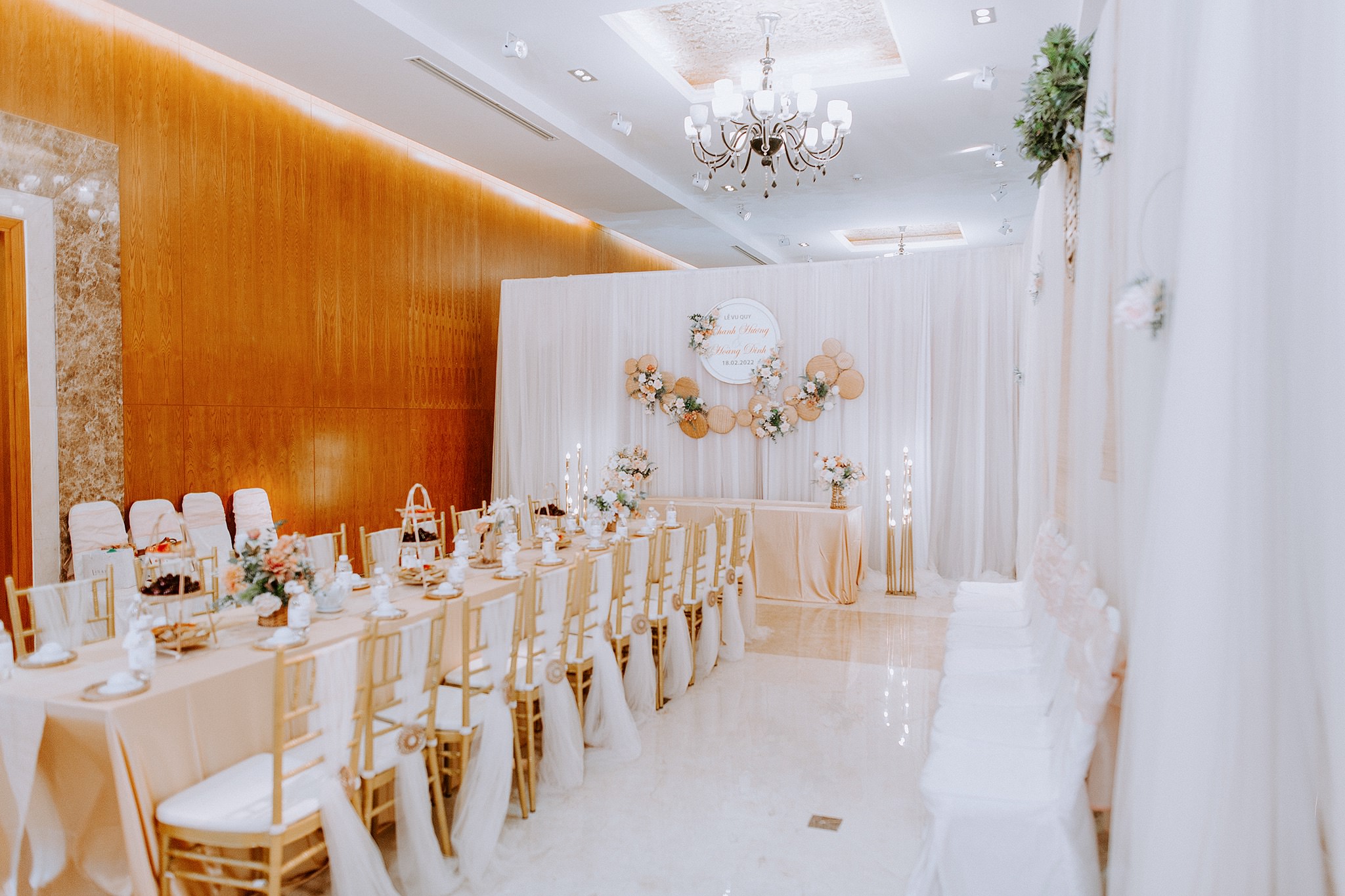 - Đặc điểm: Toàn bộ không gian được trang trí dựa trên một chủ đề hoặc một câu chuyện riêng của cặp đôi. Ví dụ: chủ đề hoa sen thanh cao, chủ đề “vũ trụ” với tông xanh navy và các chi tiết lấp lánh, hay chủ đề mang màu sắc của một bộ phim yêu thích.