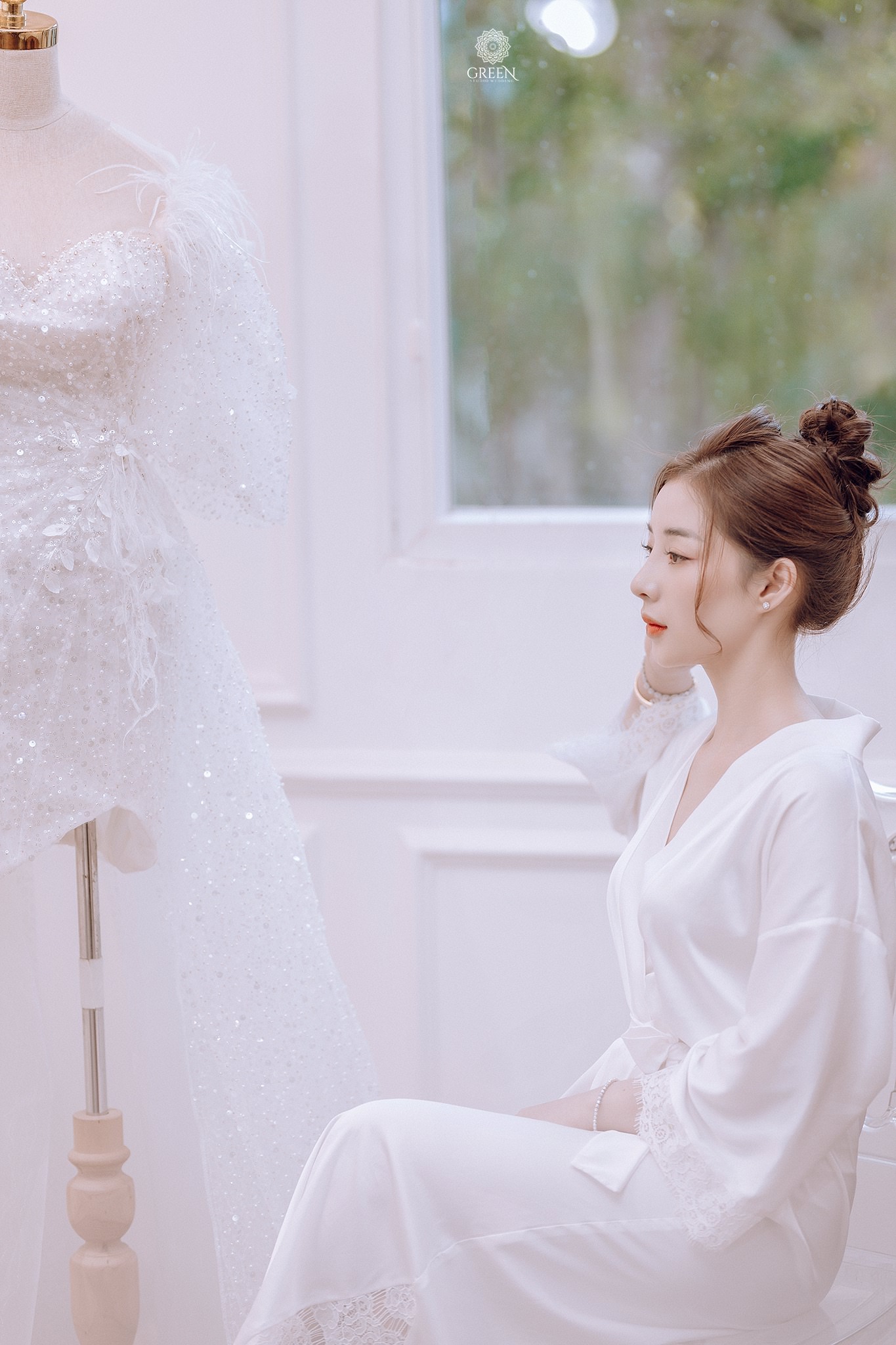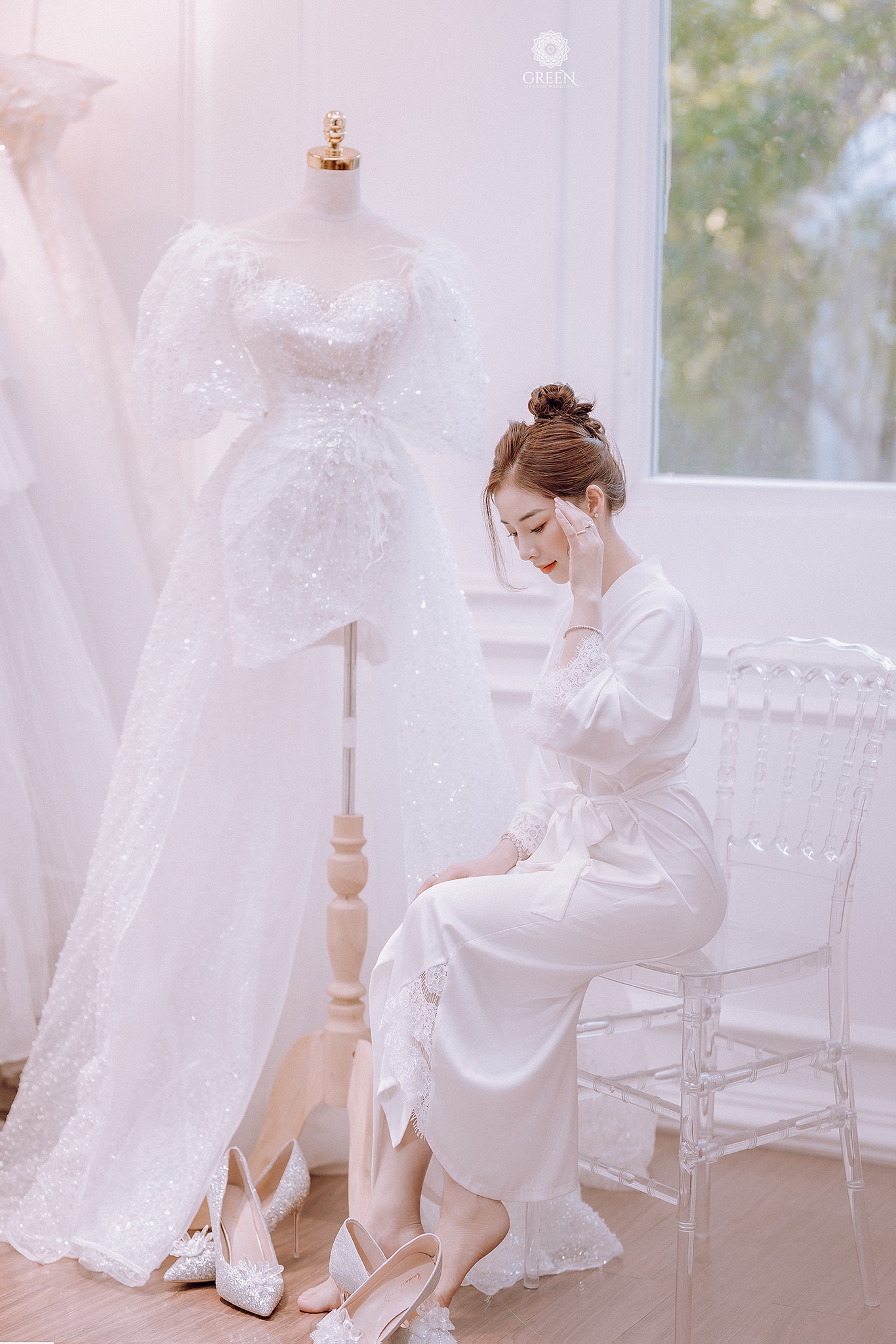 Thấu hiểu điều đó, Green Studio Wedding tự hào mang đến dịch vụ may thuê váy cưới theo số đo (hay còn gọi là “mặc nước đầu”) – một đặc quyền dành riêng cho những nàng dâu mong muốn sự hoàn hảo và dấu ấn cá nhân trong ngày cưới của mình.