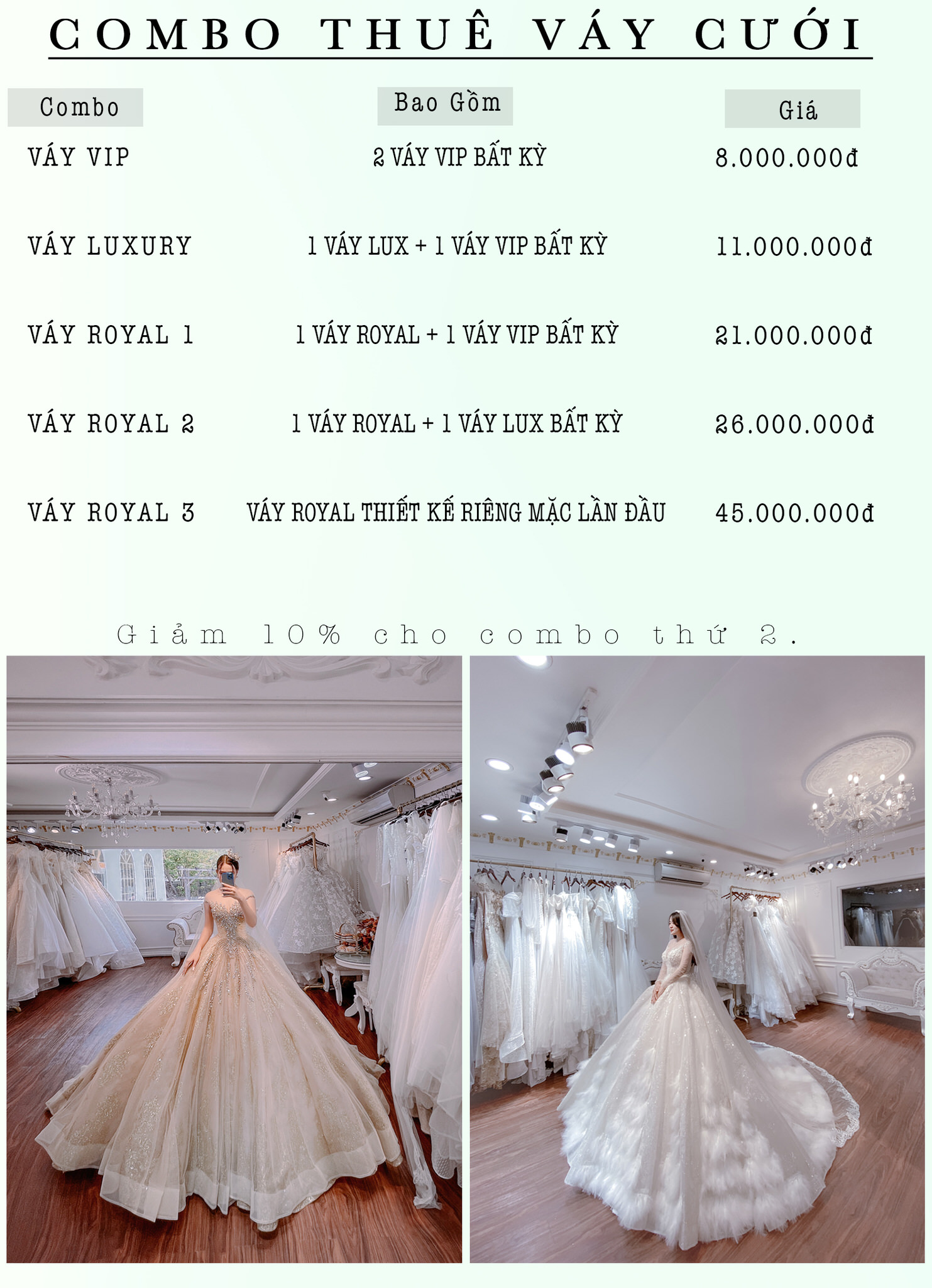 Bảng Giá Chi Tiết Các Combo Thuê Váy Cưới
