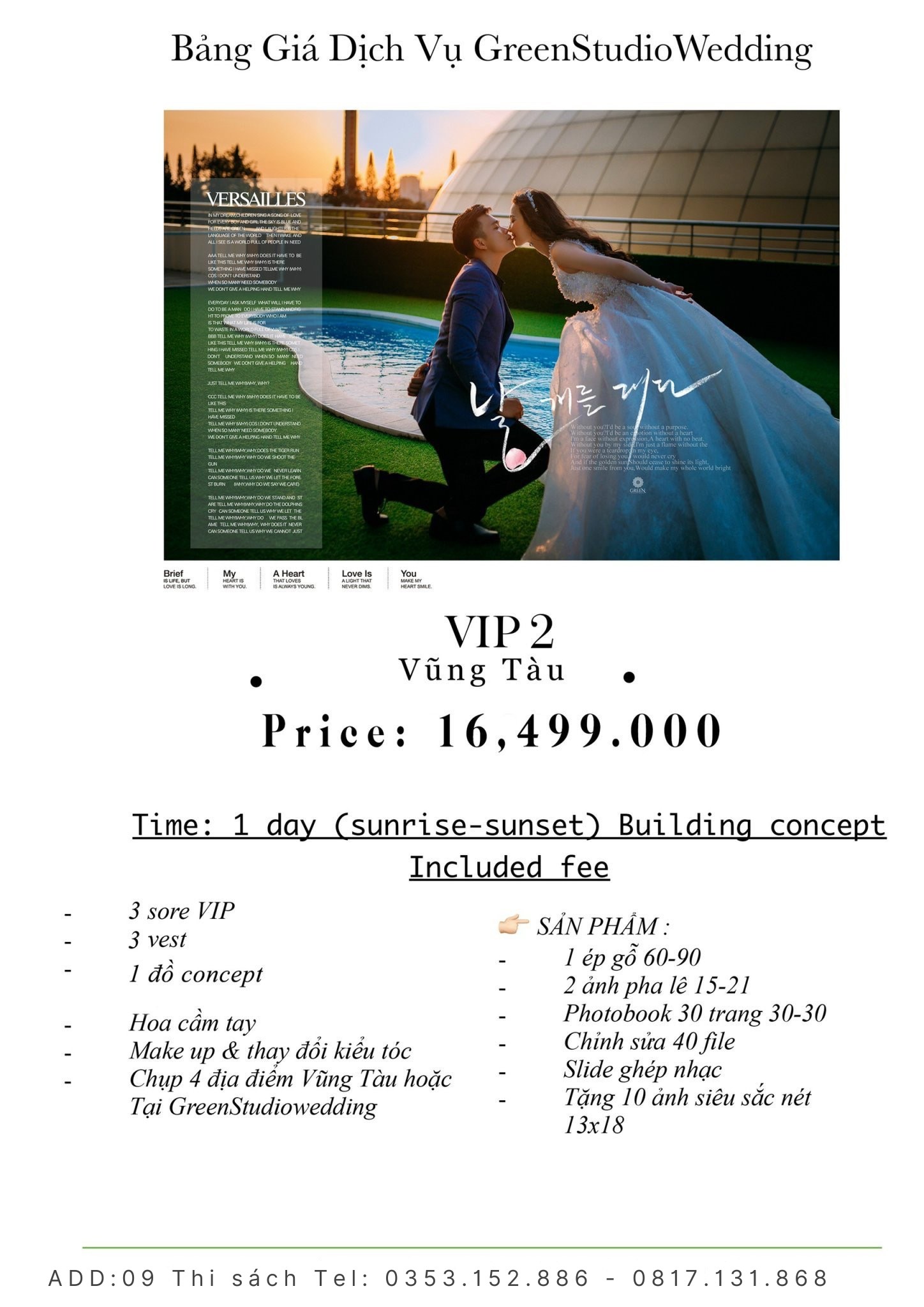 gói chụp ảnh cưới Vũng Tàu Green studio Wedding Trang Phục Cực Kỳ Đa Dạng (4 layout):