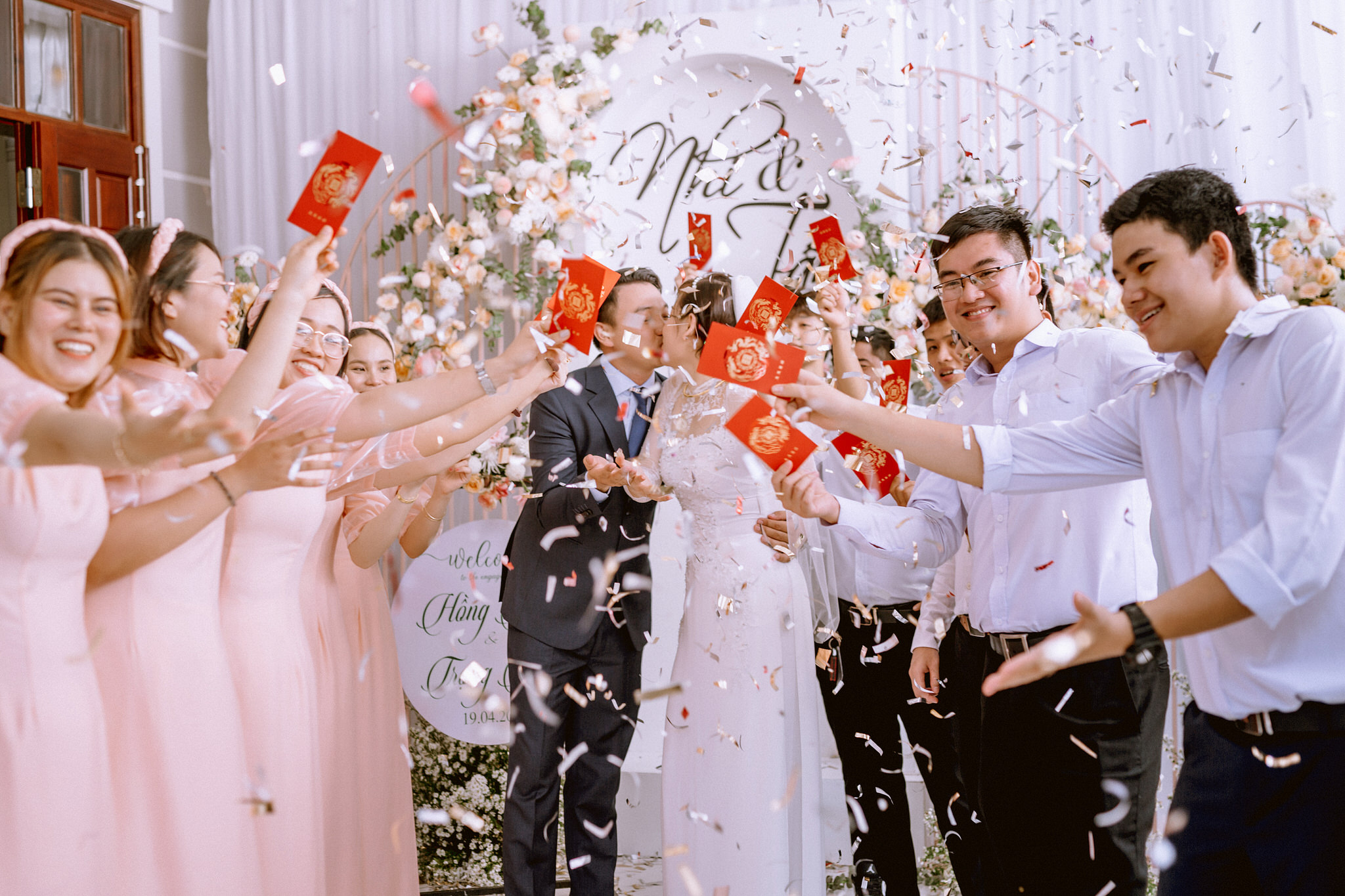 - Thời gian: Trọn vẹn 1 ngày (từ lúc cô dâu bắt đầu trang điểm buổi sáng cho đến khi kết thúc tiệc cưới buổi tối).
