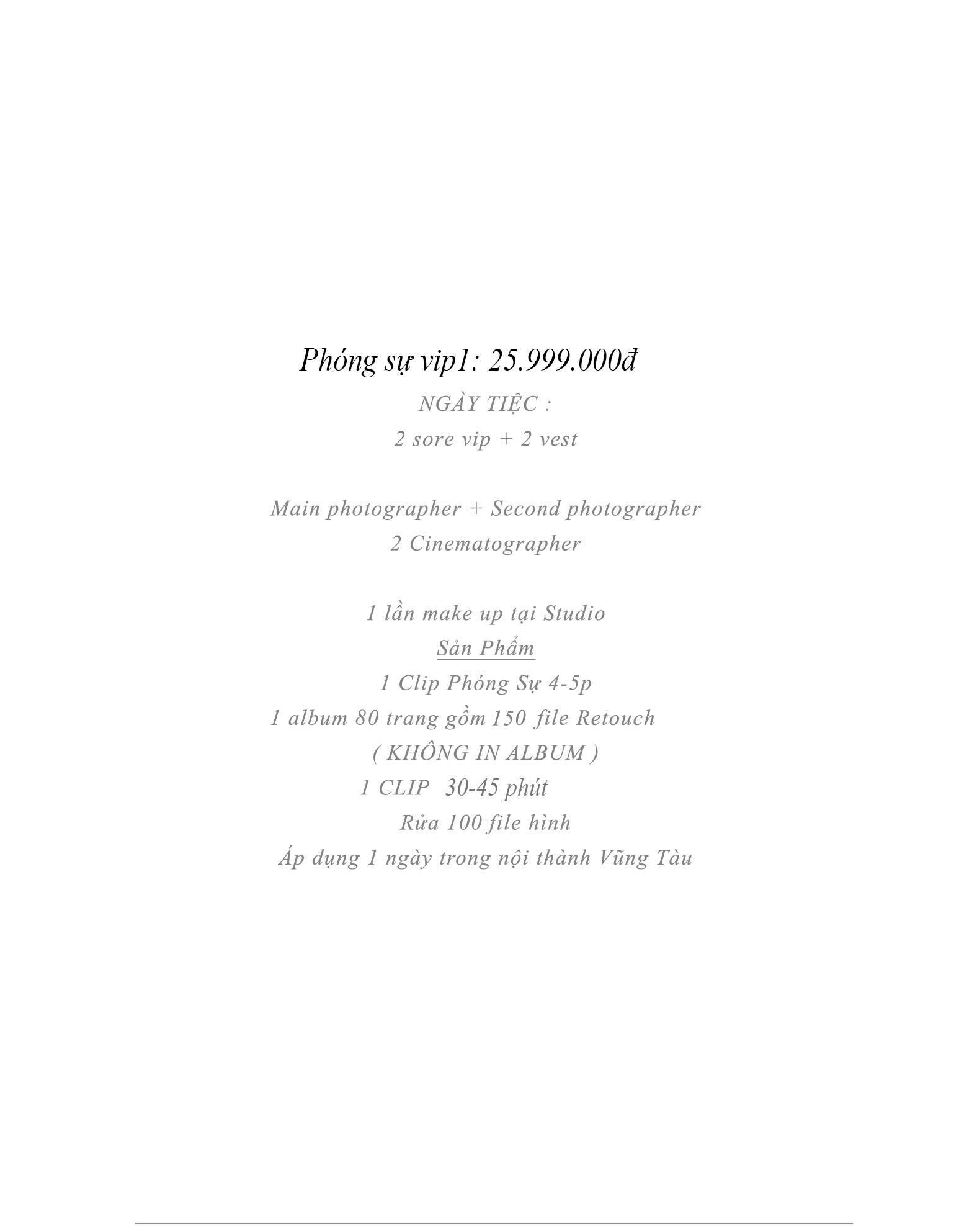 Đặc Quyền Của Gói “Phóng Sự VIP 1” – 25.999.000đ