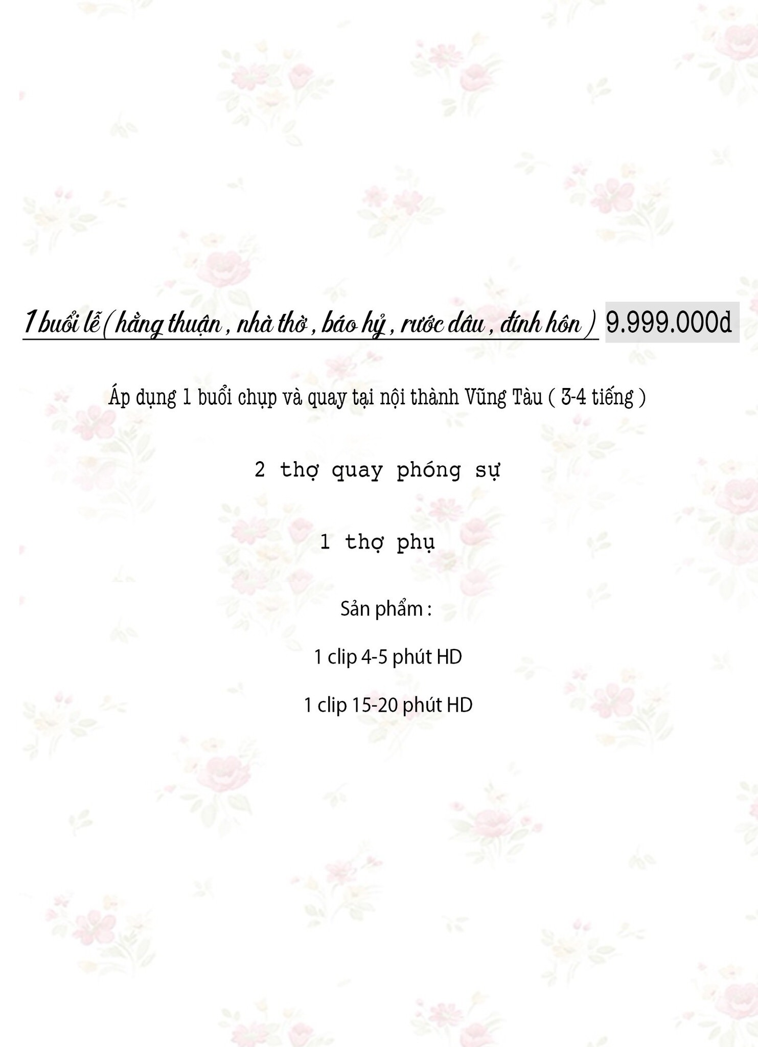 Dịch vụ quay phim phóng sự cưới chuyên nghiệp cho 1 buổi lễ (gia tiên, nhà thờ…) tại Vũng Tàu. Ekip 3 người, giao 2 clip HD highlight & truyền thống.