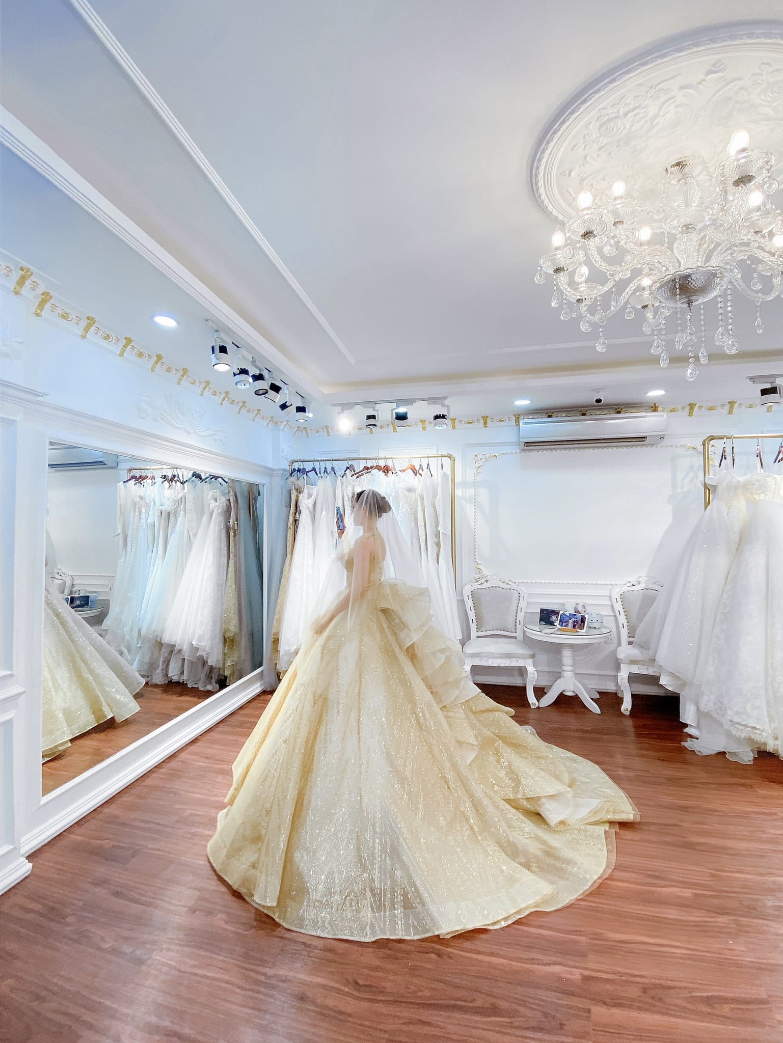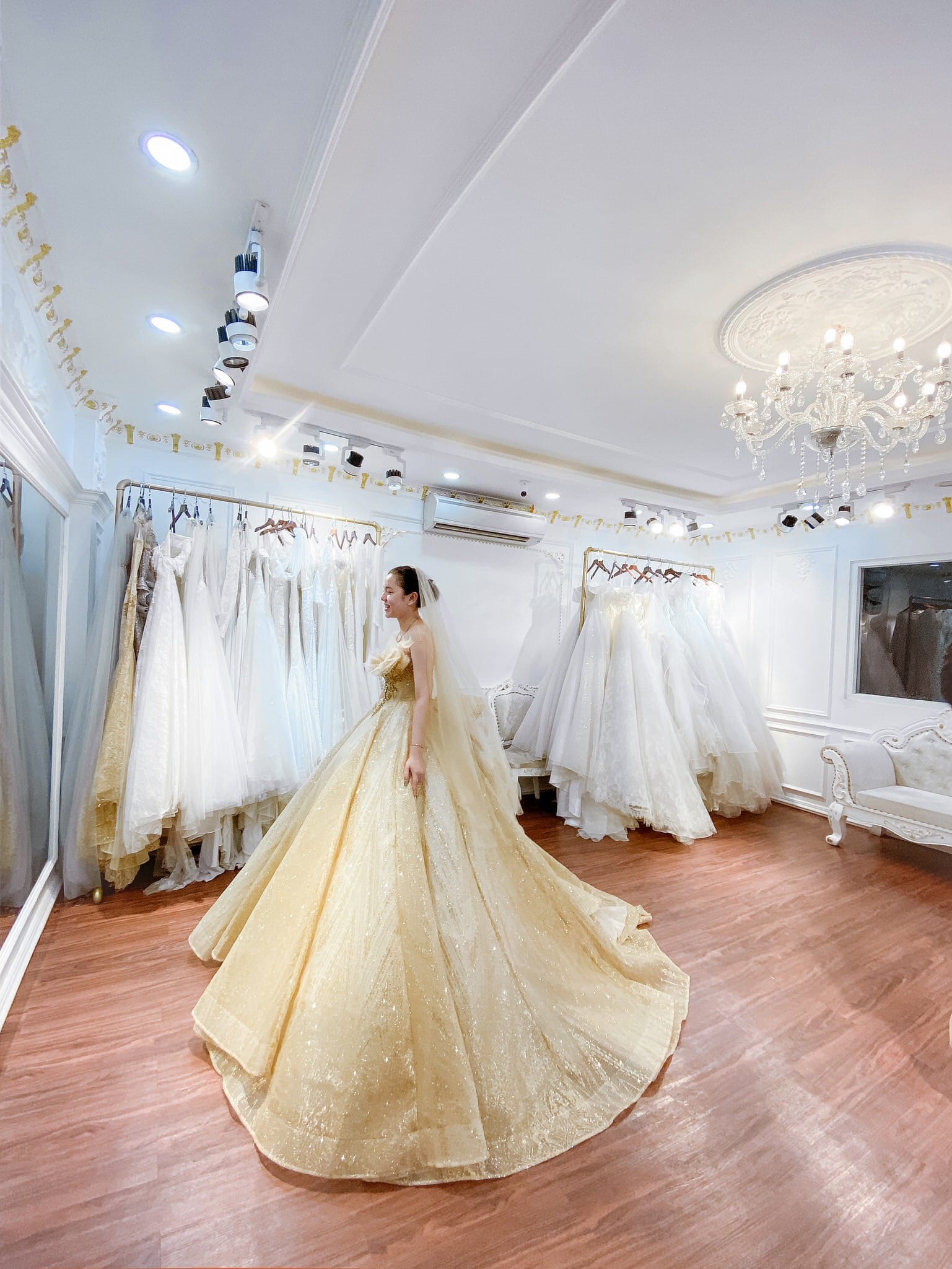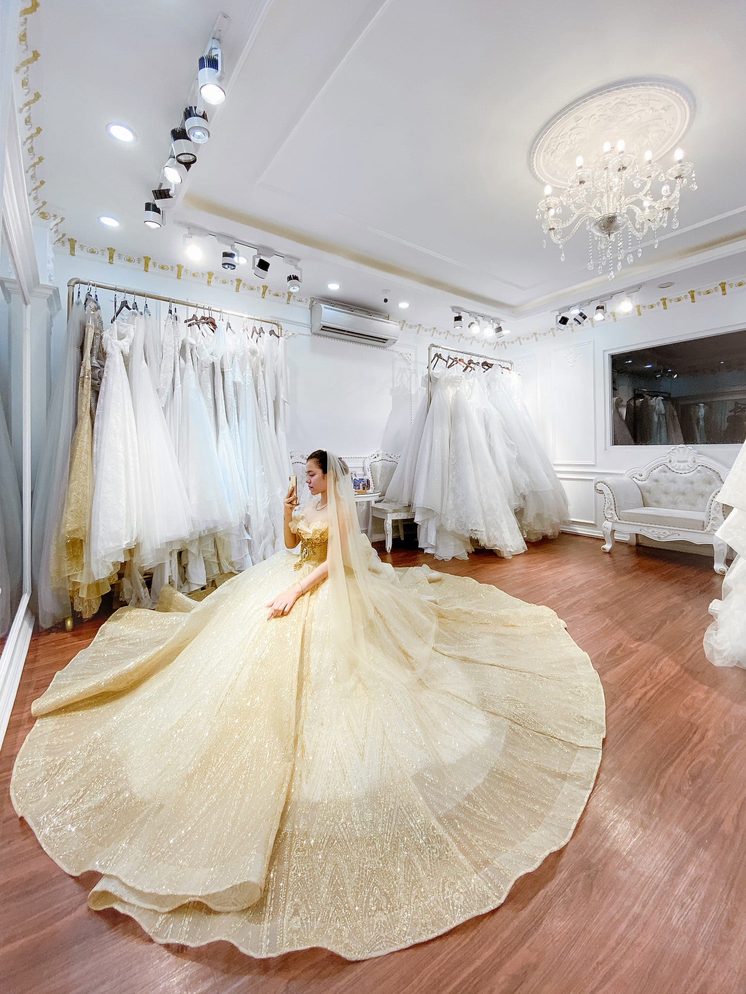 Chiêm ngưỡng kiệt tác váy cưới màu vàng đồng ‘Nữ Hoàng Mặt Trời’ tại Green Studio. Thiết kế công chúa lộng lẫy, lấp lánh dành cho cô dâu đẳng cấp.