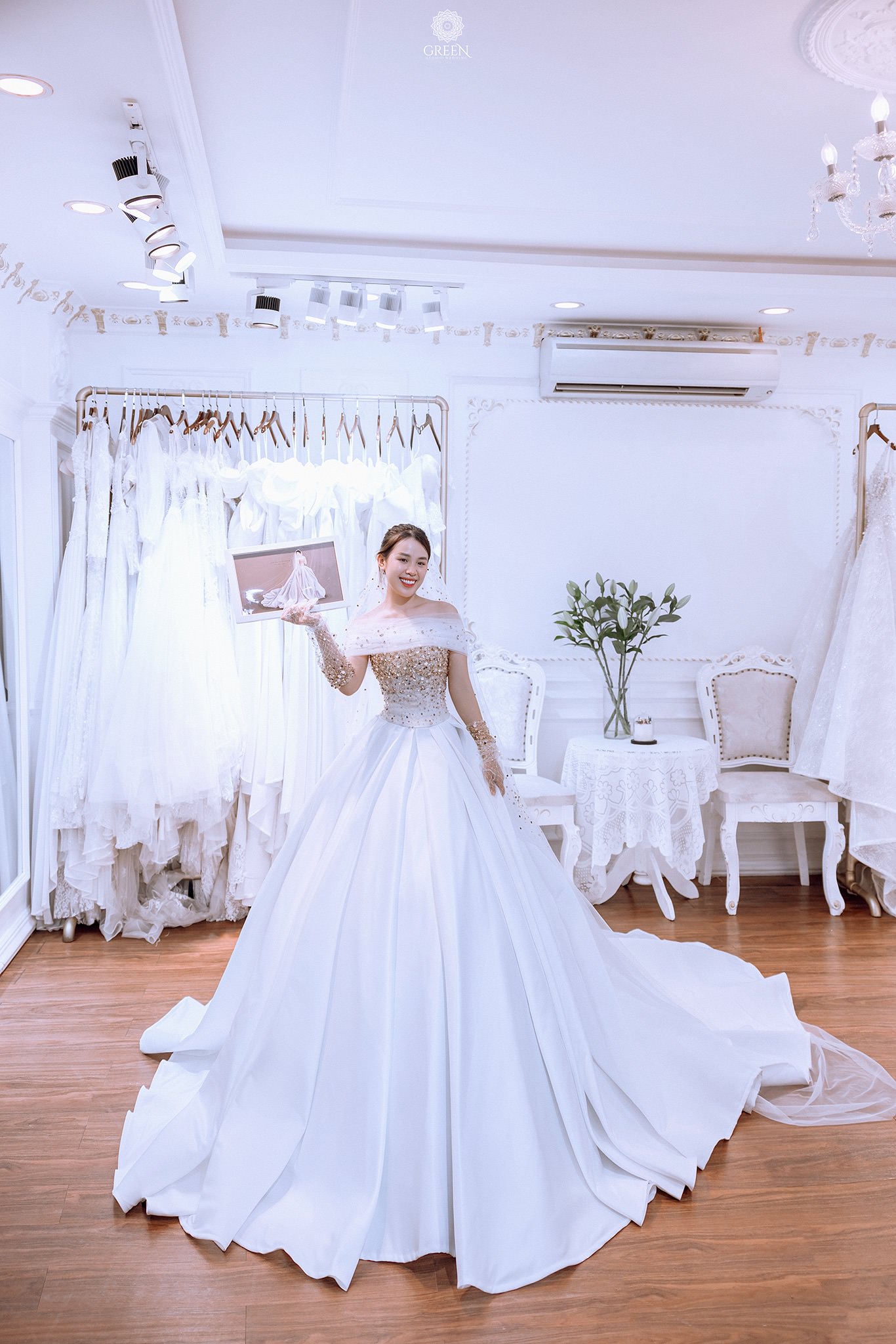 Bạn có phải là nàng dâu đang tìm kiếm một chiếc váy cưới satin công chúa để tạo nên tuyên ngôn của riêng mình? Hãy [liên hệ ngay](Gợi ý: Chèn link đến trang Liên Hệ của bạn) với Green Studio Wedding để đặt lịch hẹn chiêm ngưỡng và thử trực tiếp kiệt tác “Bản Giao Hưởng Hoàng Gia”.