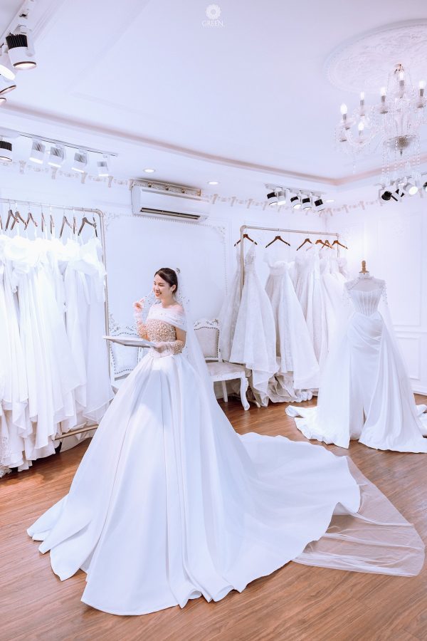 Green Studio Wedding không chỉ mang đến những chiếc váy cưới độc đáo, chúng tôi mang đến một trải nghiệm xứng tầm khi bạn lựa chọn một chiếc váy cưới satin công chúa cao cấp. Khi đến với showroom của chúng tôi, bạn sẽ được các chuyên gia tư vấn riêng, giúp bạn cảm nhận trọn vẹn vẻ đẹp của từng thiết kế.