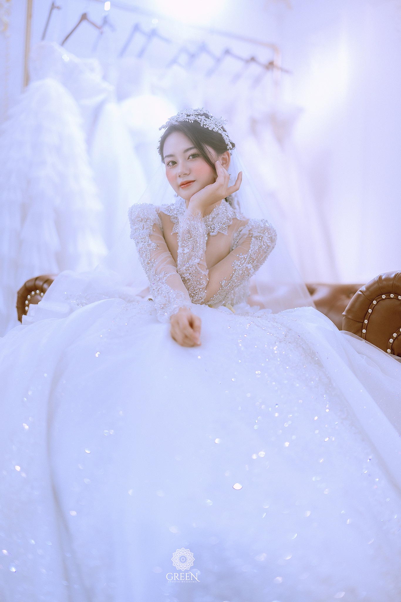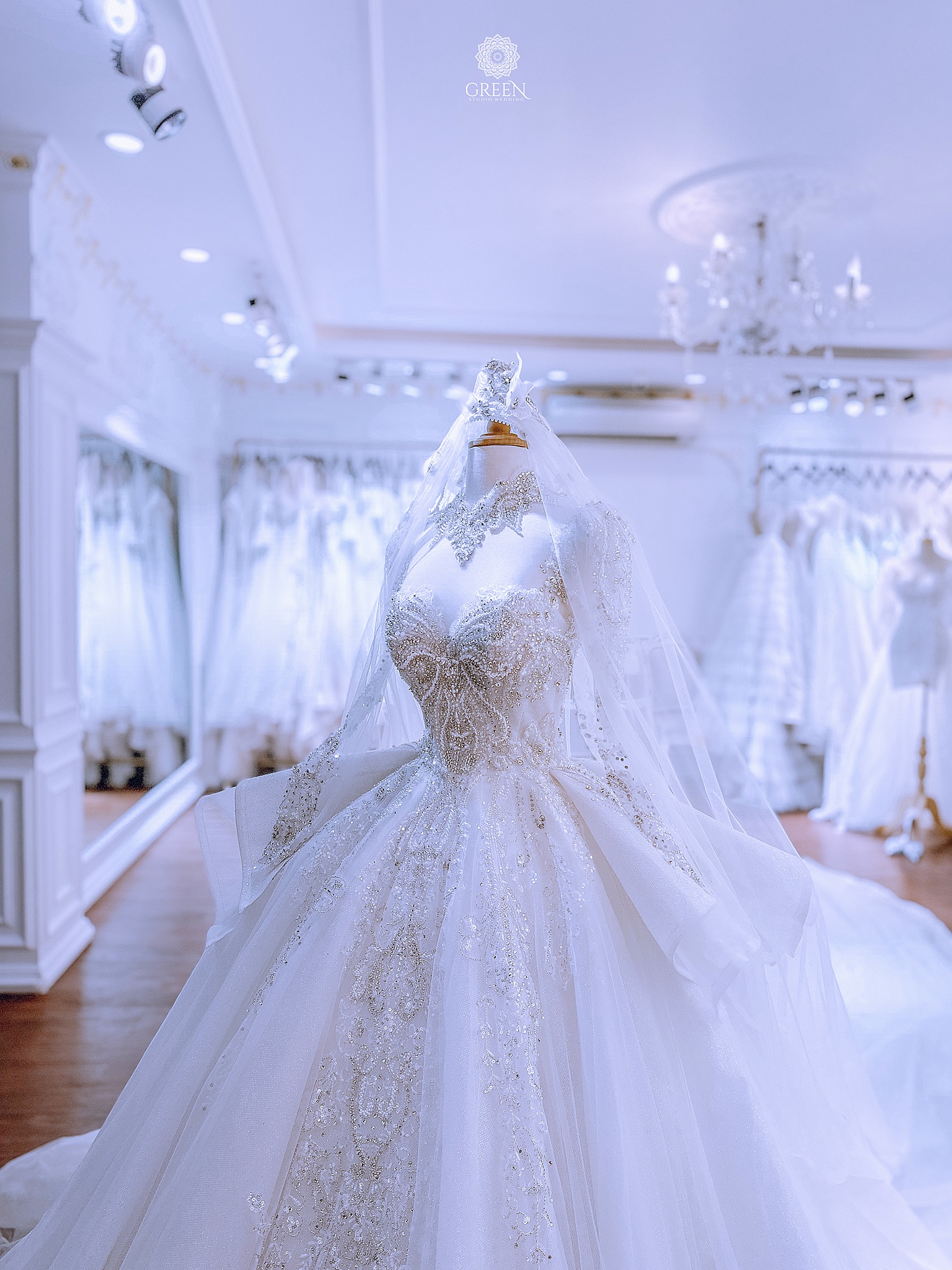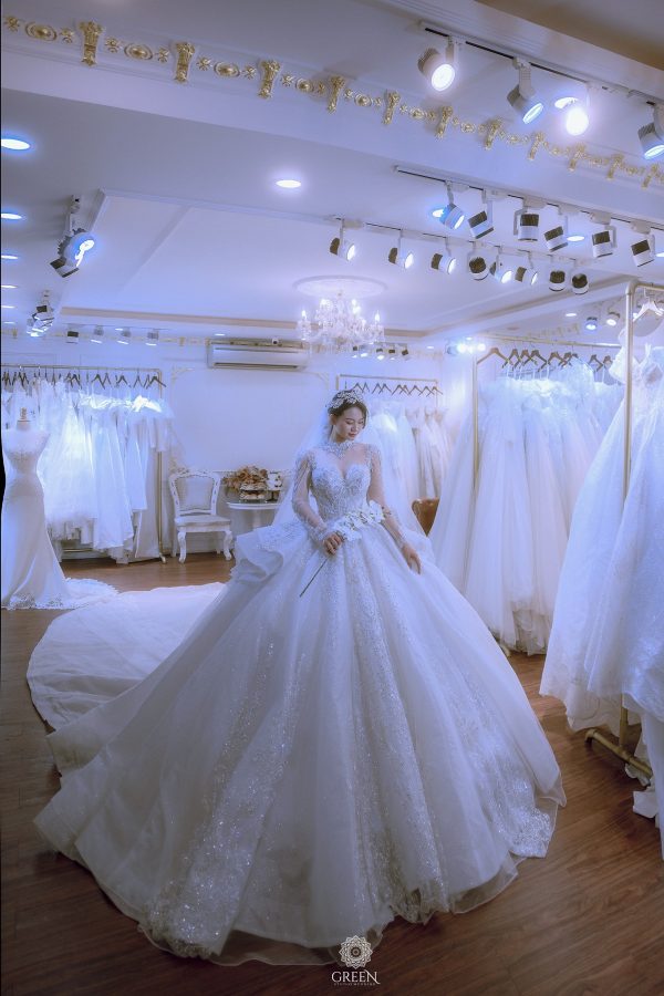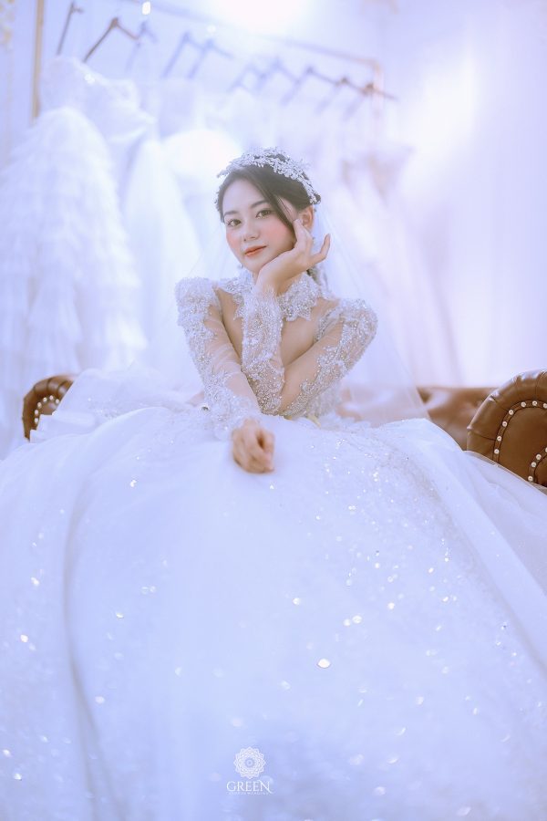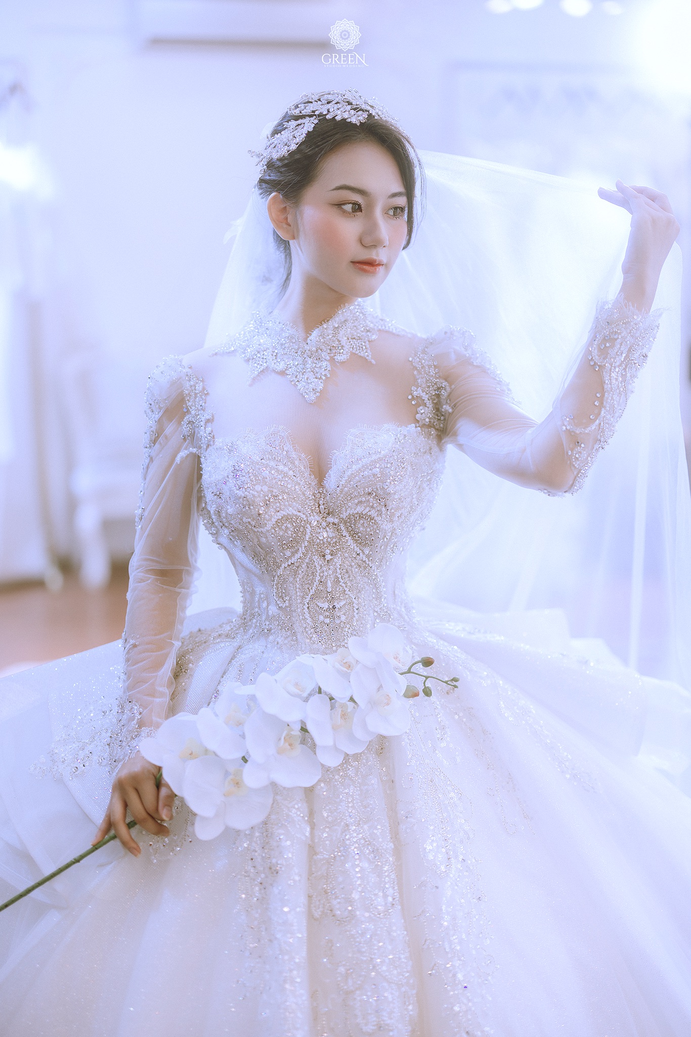 Bạn có phải là nàng dâu đang tìm kiếm một chiếc váy cưới tay dài lấp lánh để khẳng định đẳng cấp và biến ngày cưới thành một sự kiện hoàng gia? Hãy [liên hệ ngay](Gợi ý: Chèn link đến trang Liên Hệ của bạn) với Green Studio Wedding để đặt lịch hẹn chiêm ngưỡng trực tiếp kiệt tác “Nữ Hoàng Ngân Hà”.