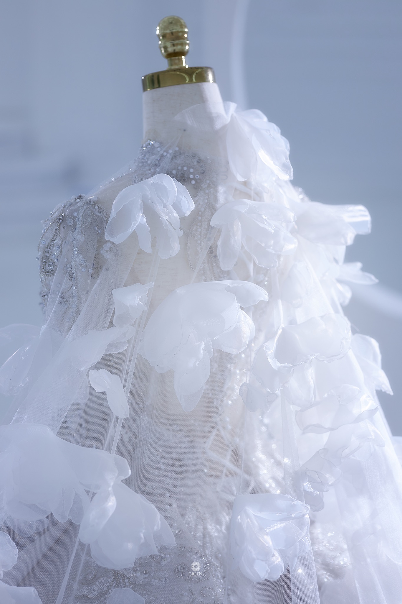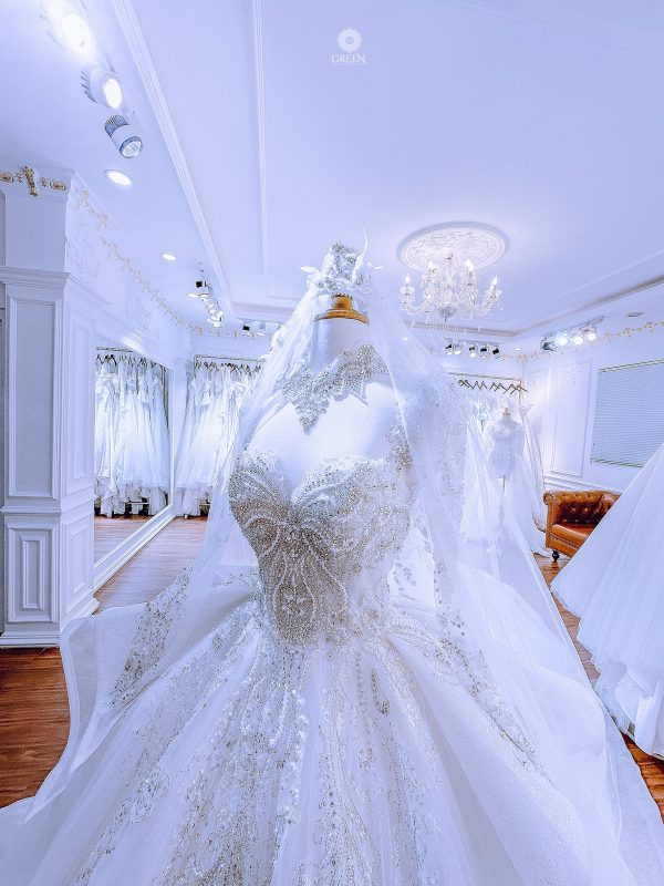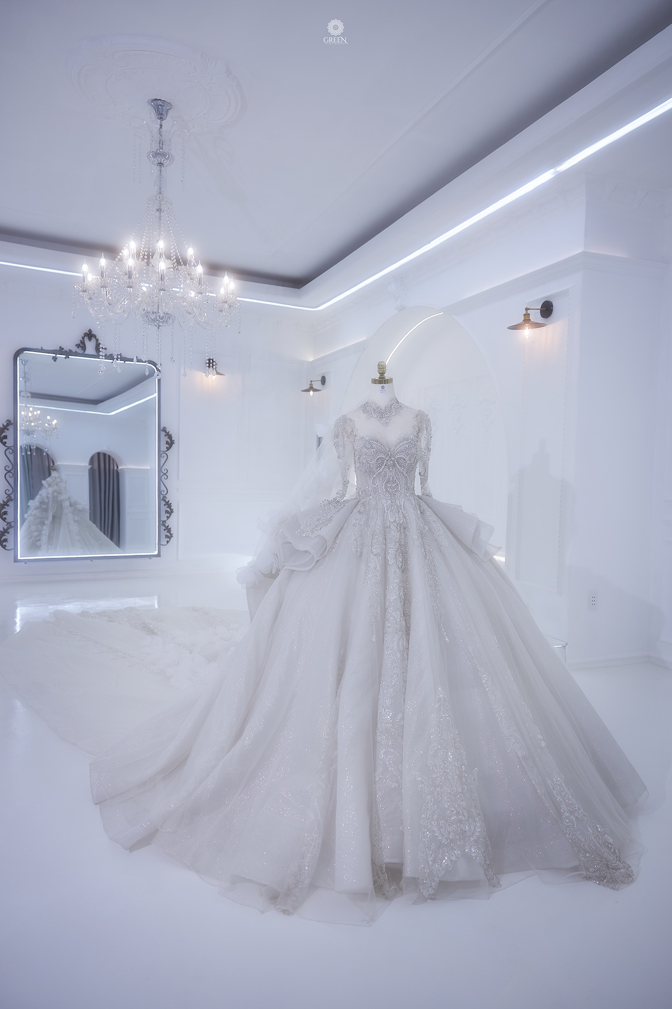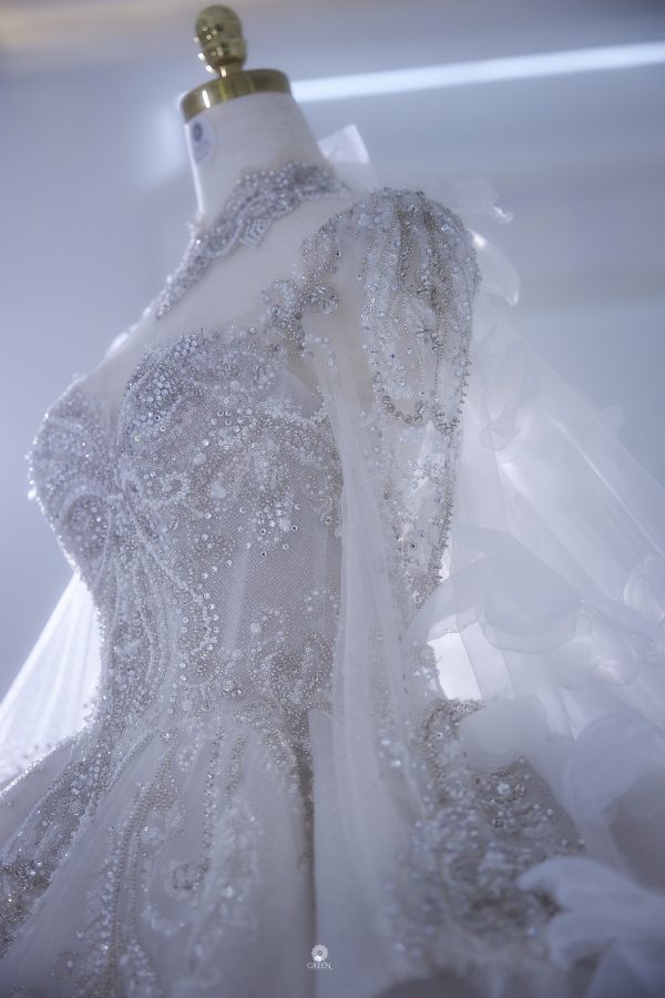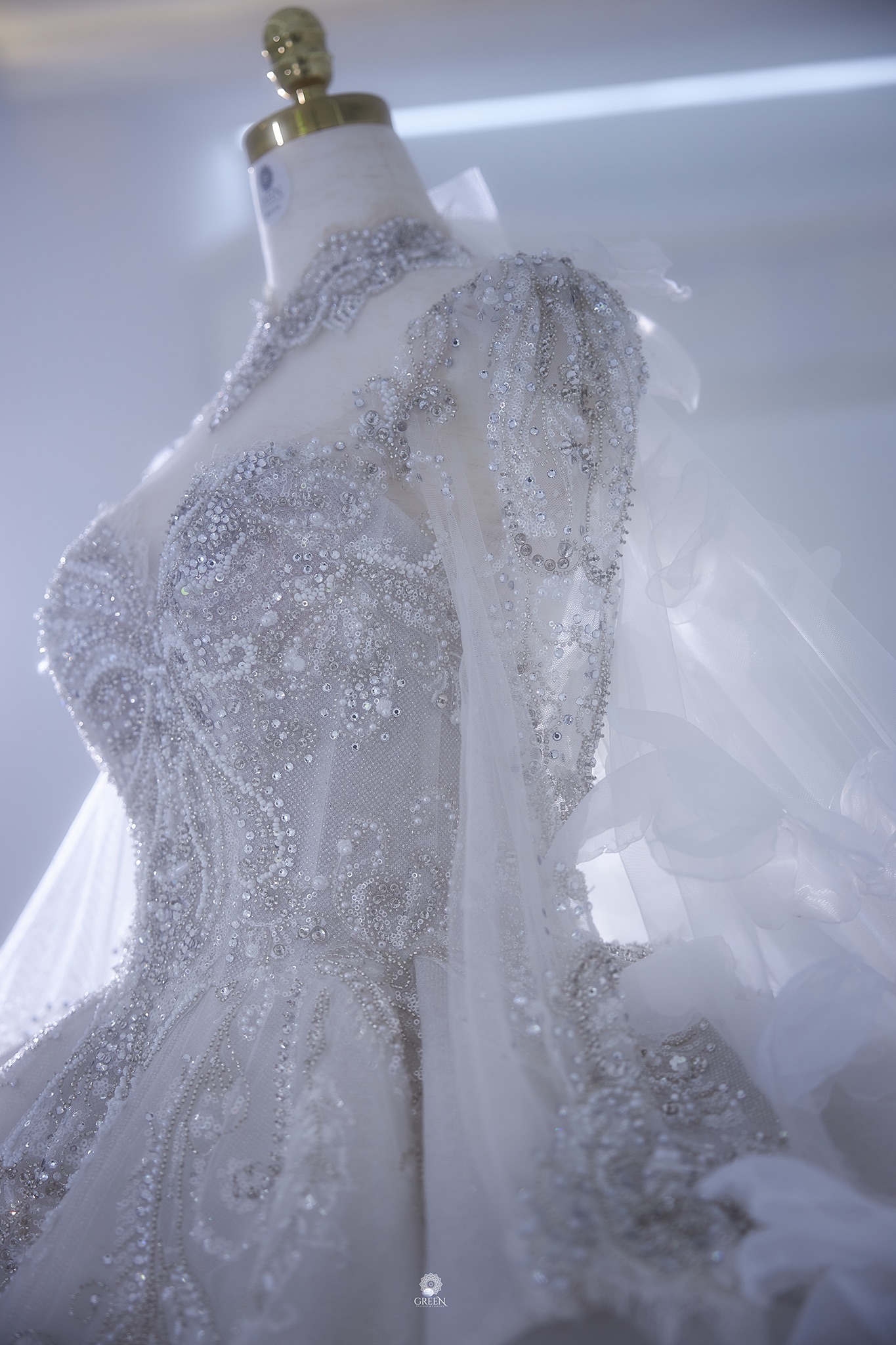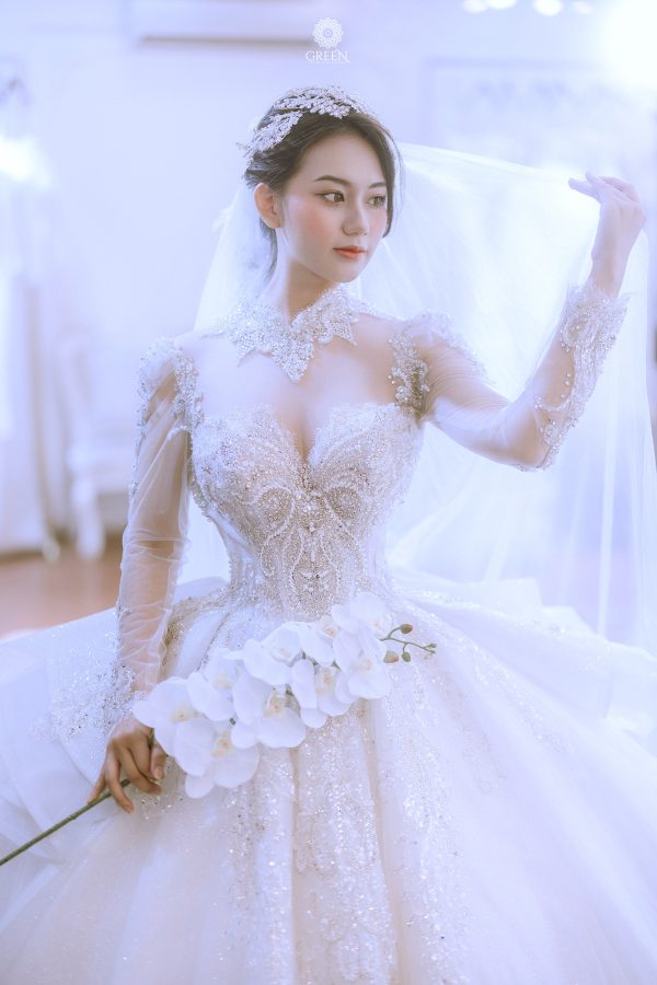 Trong vũ trụ thời trang cưới vô tận, có những thiết kế được sinh ra không chỉ để làm đẹp, mà để định nghĩa lại sự xa hoa và quyền lực. Mẫu váy cưới tay dài lấp lánh mang tên “Nữ Hoàng Ngân Hà” chính là một kiệt tác như vậy. Đây là thiết kế độc quyền và là niềm tự hào của Green Studio Wedding, một tác phẩm nghệ thuật dành riêng cho những nàng dâu tìm kiếm vẻ đẹp hoàng gia tuyệt đối và một tuyên ngôn thời trang bất hủ trong ngày trọng đại.