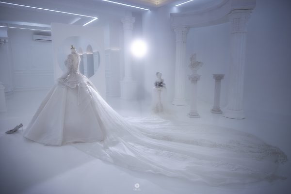 Nguồn cảm hứng cho “Nữ Hoàng Ngân Hà” đến từ hình ảnh một nữ thần cai quản các vì sao, một thực thể của ánh sáng và quyền năng. Chúng tôi muốn tạo ra một chiếc váy mang vẻ đẹp choáng ngợp, vừa lạnh lùng kiêu sa như băng giá, lại vừa ấm áp rực rỡ như một tinh vân. Để có được một mẫu váy cưới tay dài lấp lánh xứng tầm, các nhà thiết kế đã nghiên cứu kỹ lưỡng trang phục hoàng gia cổ điển, kết hợp với kỹ thuật may đo hiện đại để tạo ra một phom dáng vừa uy nghi, vừa tôn vinh đường nét cơ thể người phụ nữ. Sự lấp lánh của chiếc váy không chỉ là sự trang trí, nó chính là linh hồn, là ánh sáng của hàng tỷ vì sao được kết tinh lại.