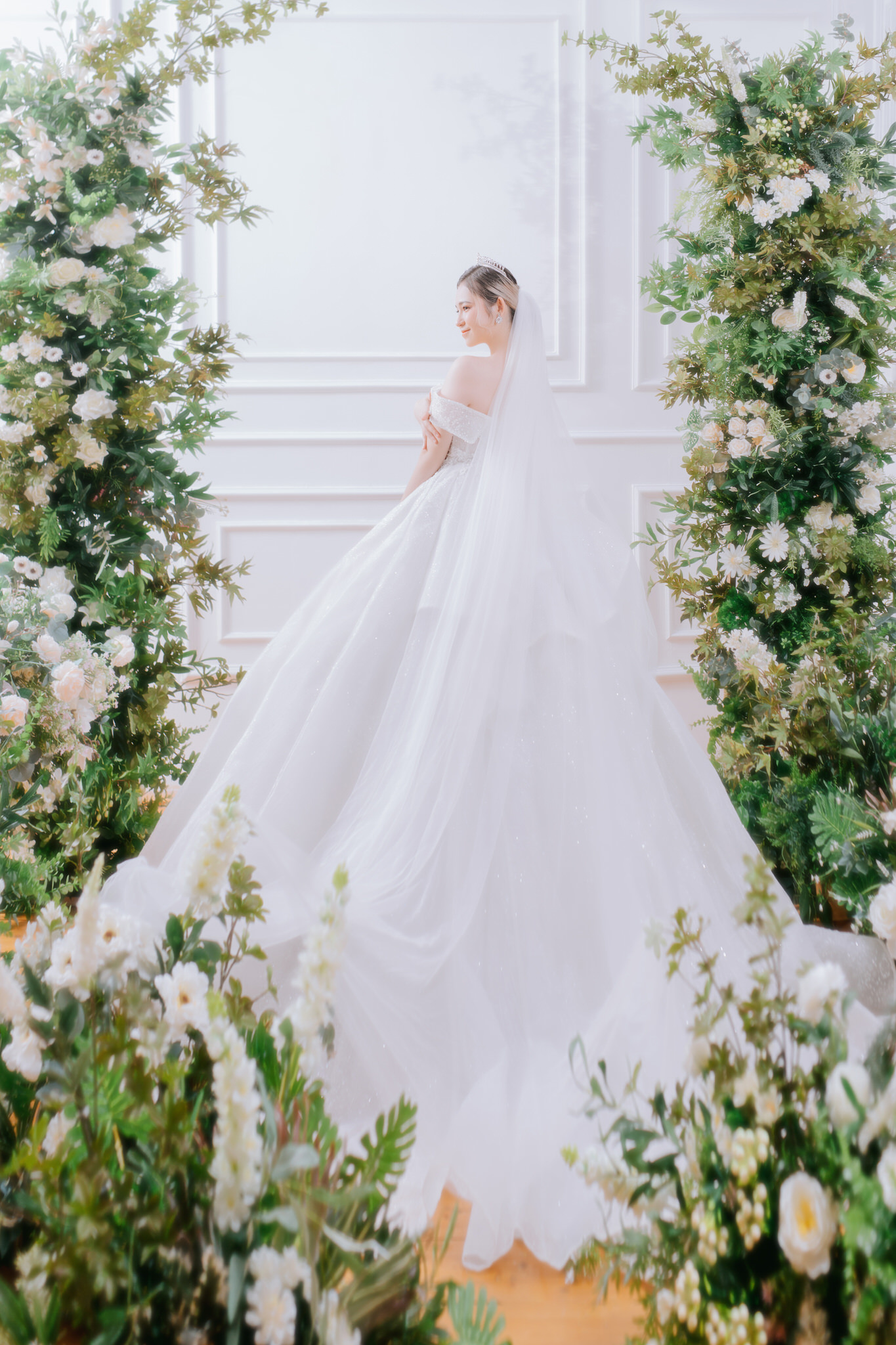 Mẫu váy cưới trễ vai công chúa “Nàng Thơ Cổ Tích” là hiện thân của mọi giấc mơ lãng mạn, nơi vẻ đẹp cổ điển và nét thơ mộng hiện đại hòa quyện làm một. Đây là thiết kế dành cho những cô dâu muốn khoảnh khắc mình bước vào lễ đường sẽ là khoảnh khắc đẹp tựa một câu chuyện cổ tích được kể bằng ngôn ngữ của ánh sáng và sự tinh tế.
