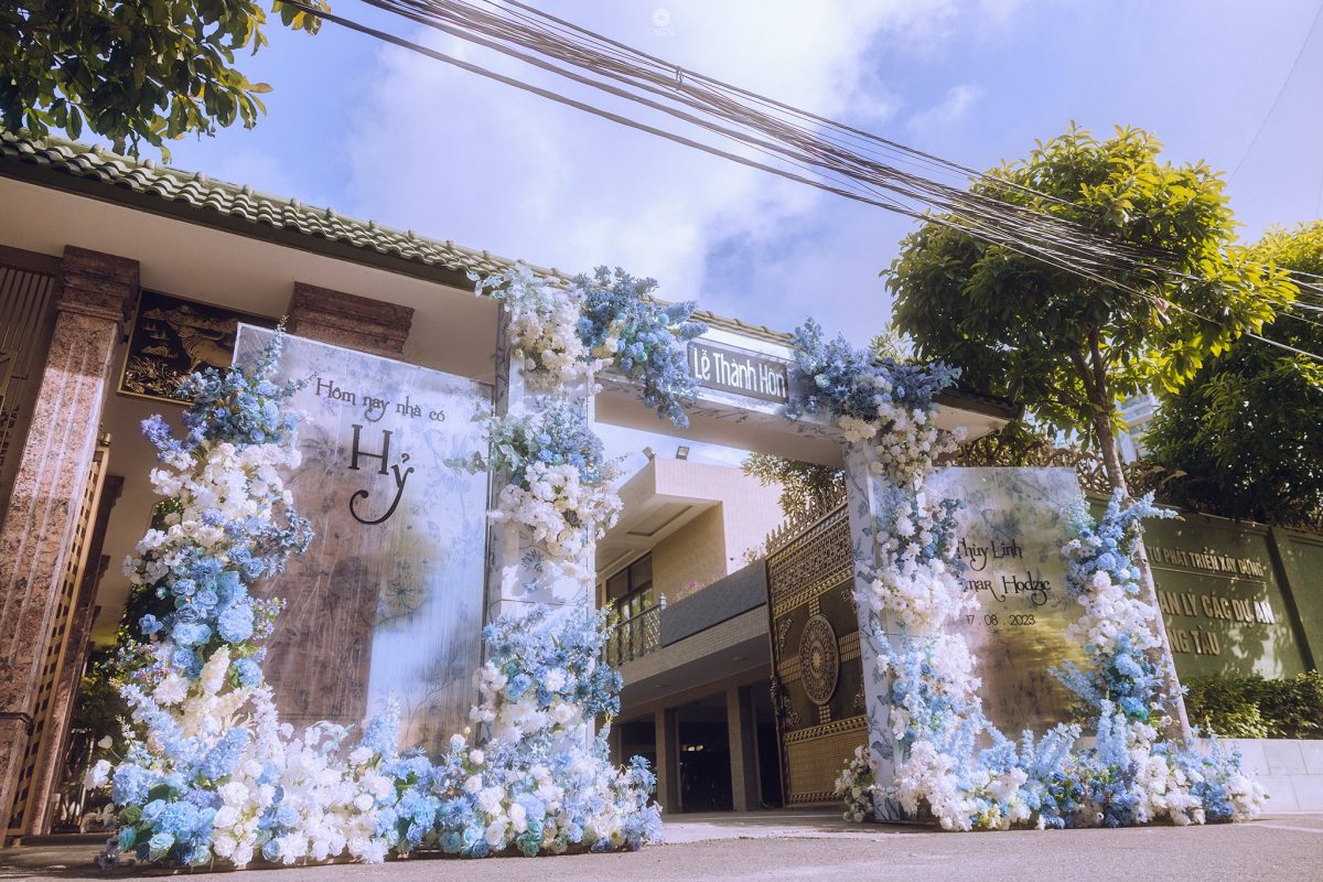 Là ấn tượng đầu tiên khi đoàn rước dâu đến. Cổng hoa có thể được kết từ hoa tươi, hoa lụa hoặc các vật liệu sáng tạo khác như lá dừa, tre nứa… tùy thuộc vào phong cách chủ đạo.
