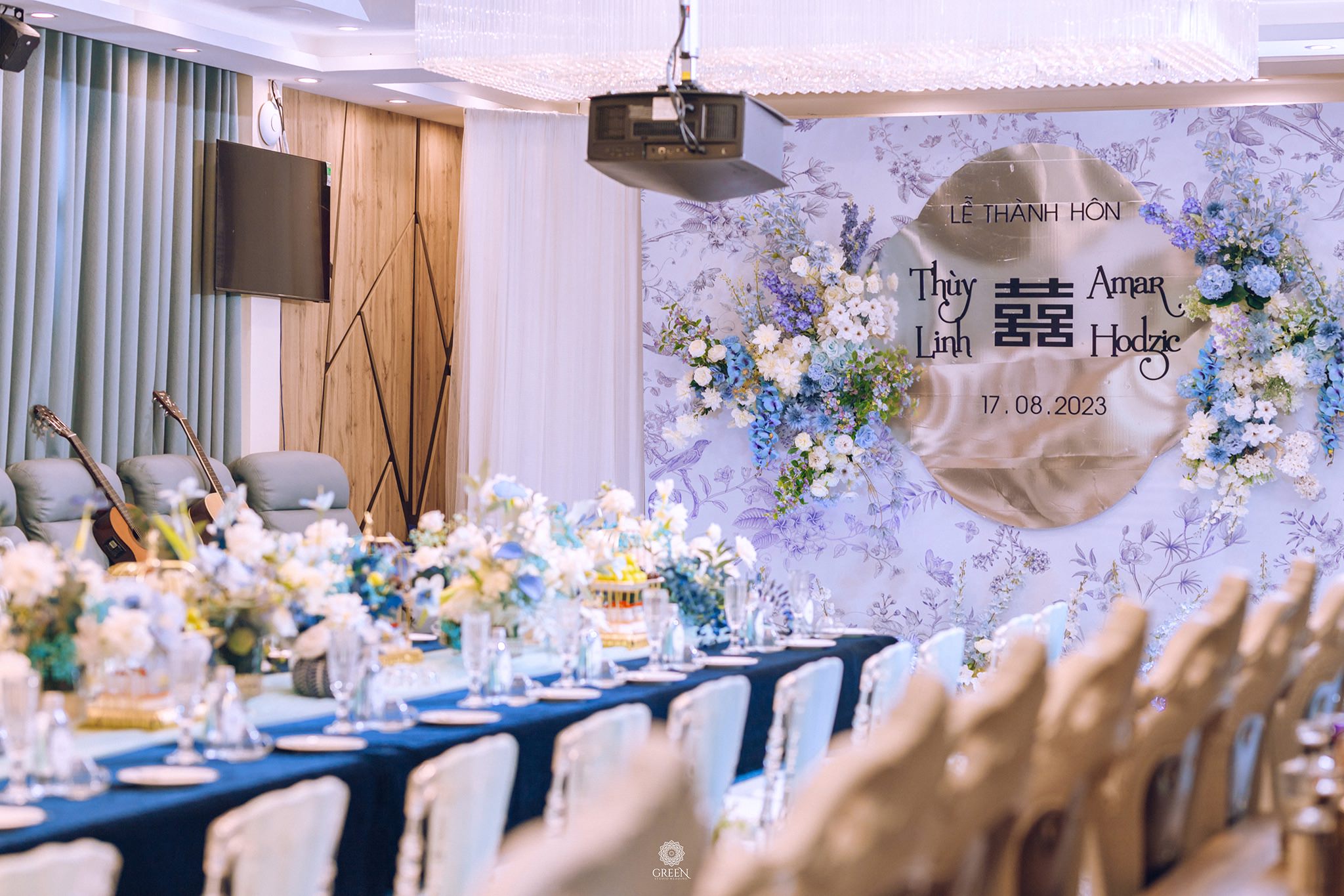 Một chi tiết hiện đại, giúp khách mời dễ dàng nhận ra và cũng là một góc check-in xinh xắn. Bảng tên thường được thiết kế đồng bộ với thiệp cưới và phông nền chính.