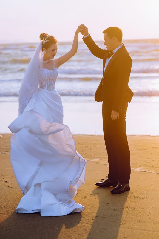 - Mùa Khô (tháng 11 – tháng 4): Đây là “mùa vàng” chụp ảnh cưới, đặc biệt là ở các thành phố biển như Vũng Tàu. Trời nắng đẹp, biển xanh, ánh sáng rực rỡ, giúp bạn có những bức ảnh ngoại cảnh lung linh.